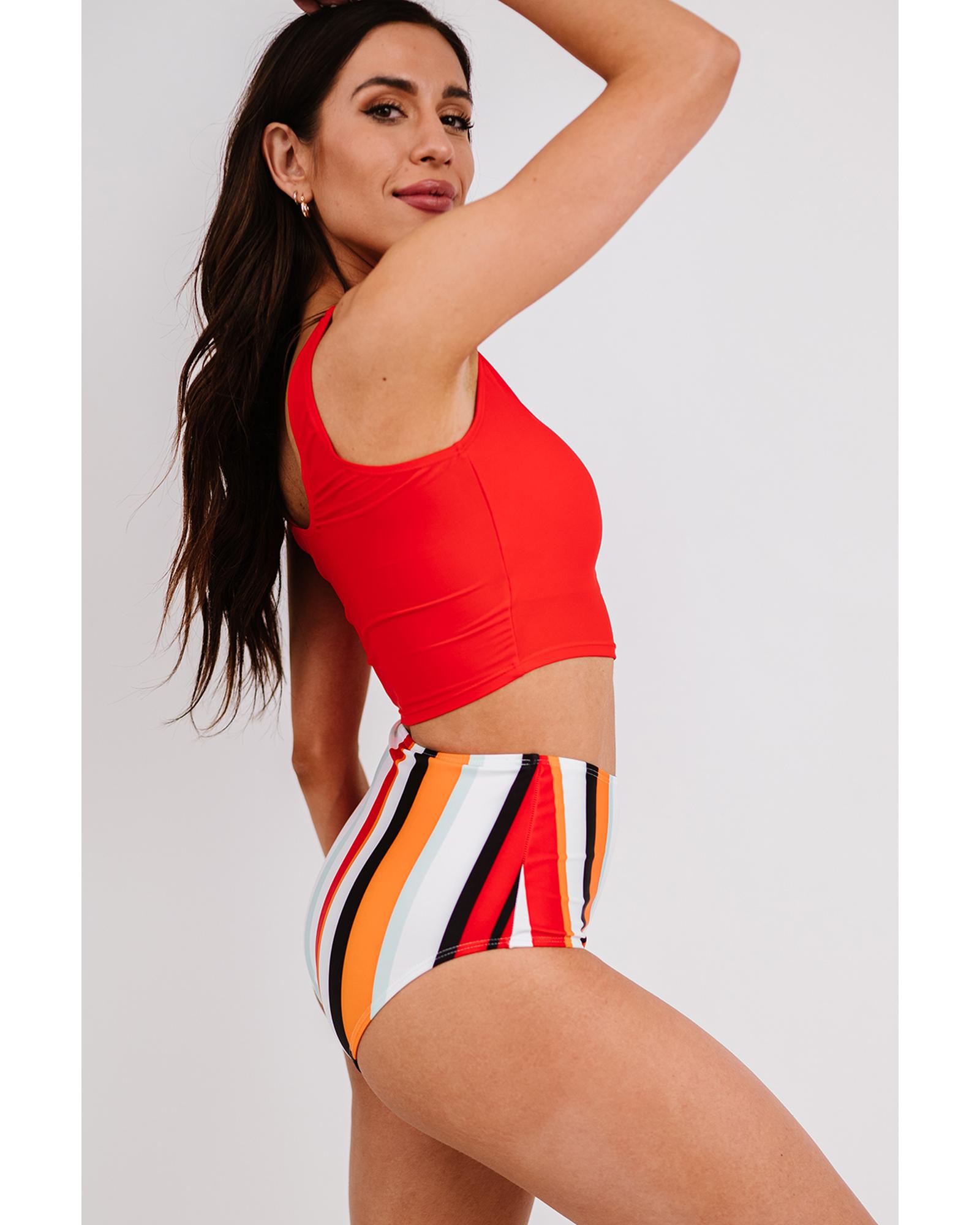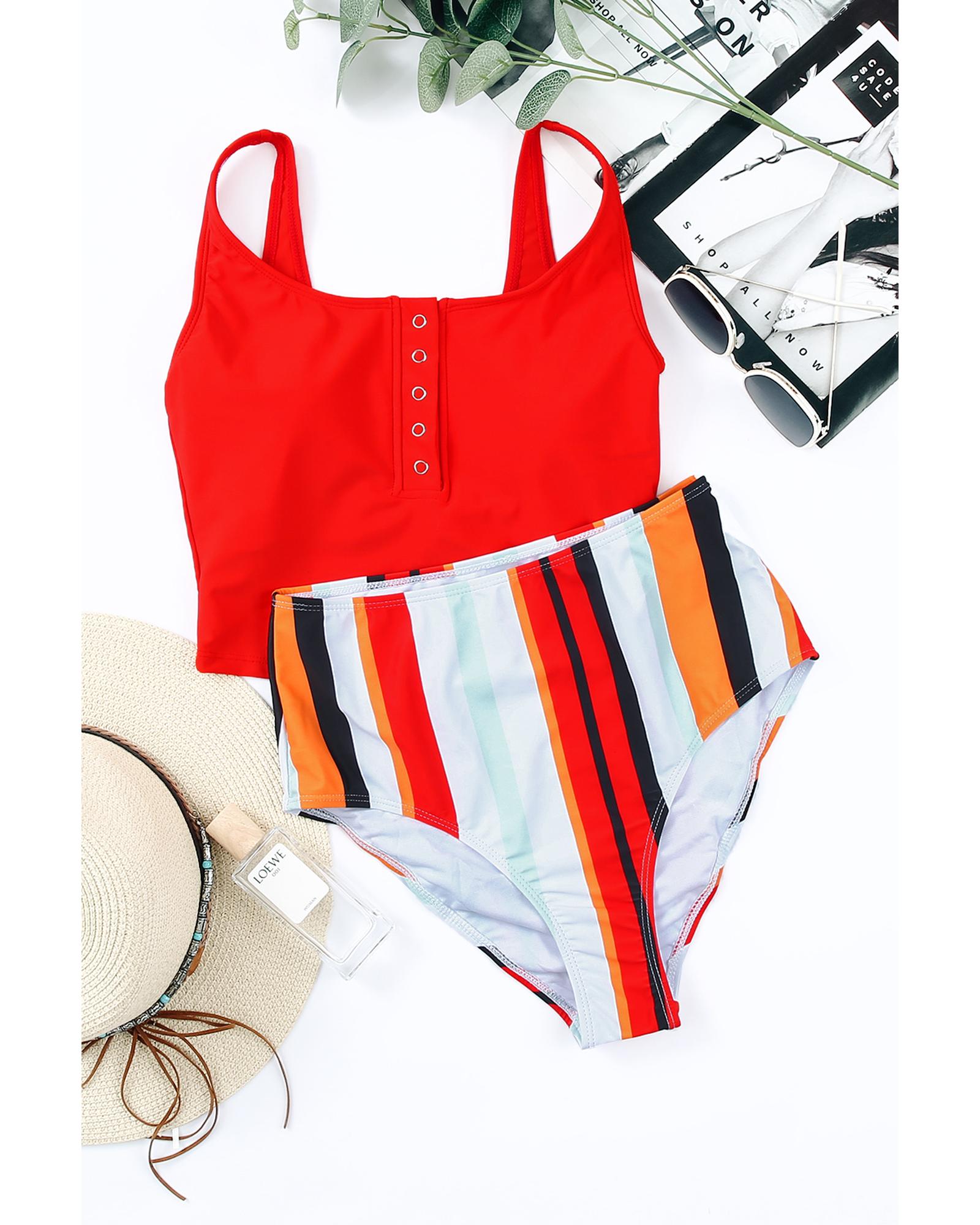Square Neck Sleeveless Fashion Print Tankini Set – L