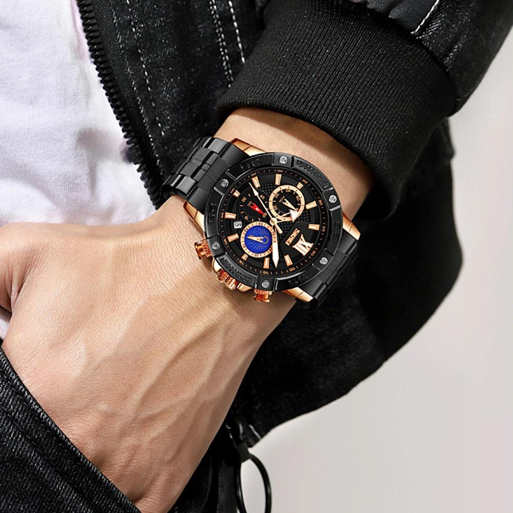 Stainless Steel Men Moonphase Quartz Watch with Strap – Silver