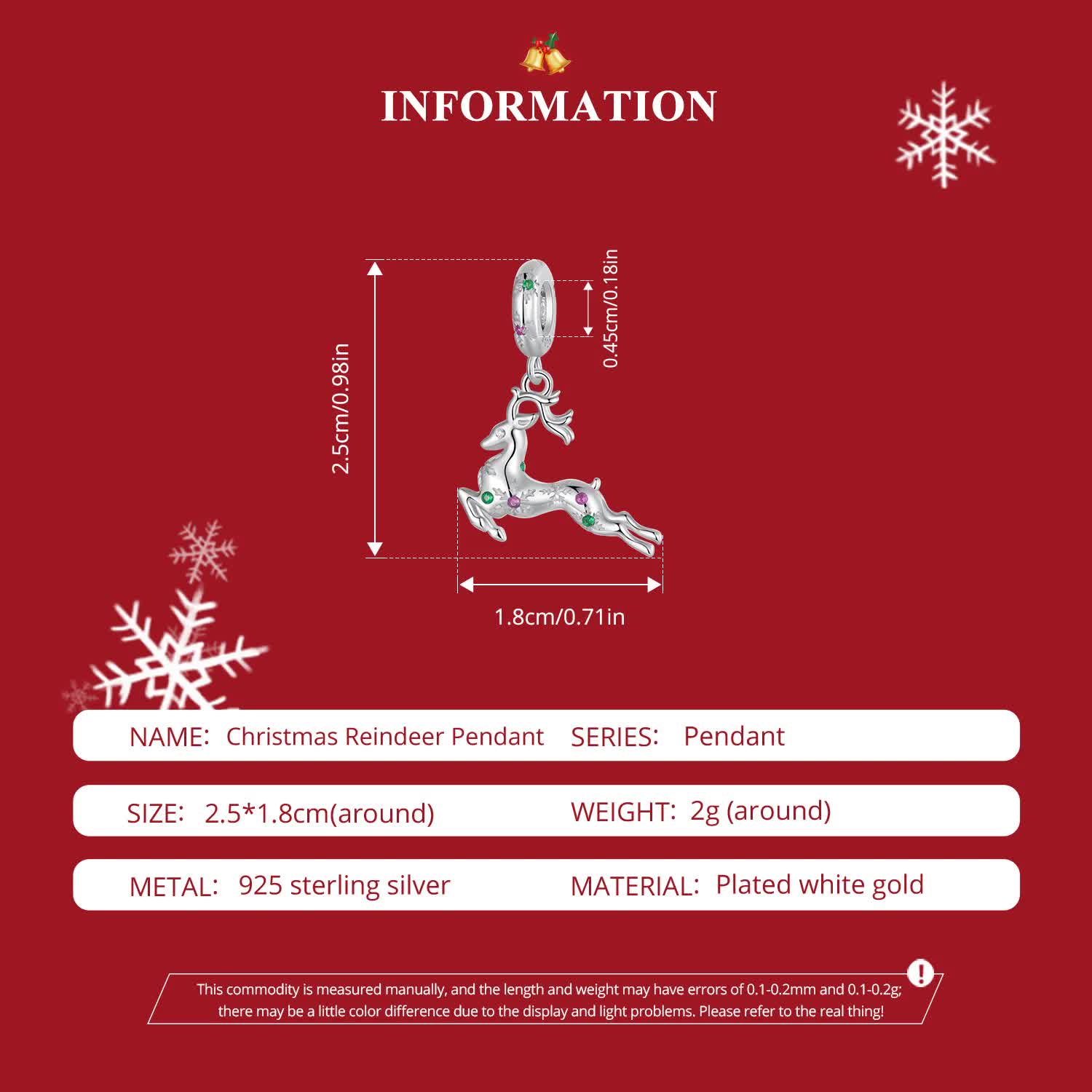 Embrace the holiday spirit with this elegant Sterling Silver Reindeer Charm. Featuring a detailed reindeer design adorned with colorful accents and snowflake engravings, this charm is a thoughtful gift for loved ones.