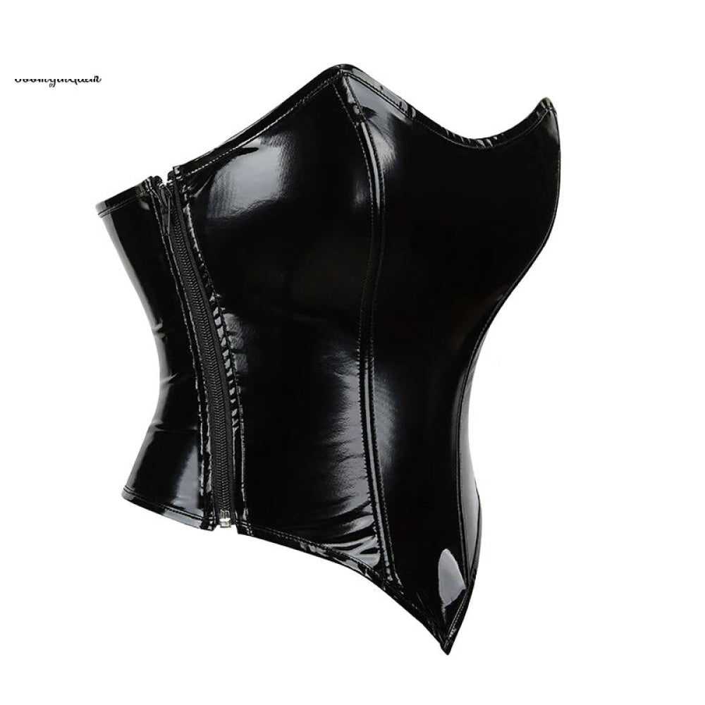 • Shinny leather corset top with side zip design