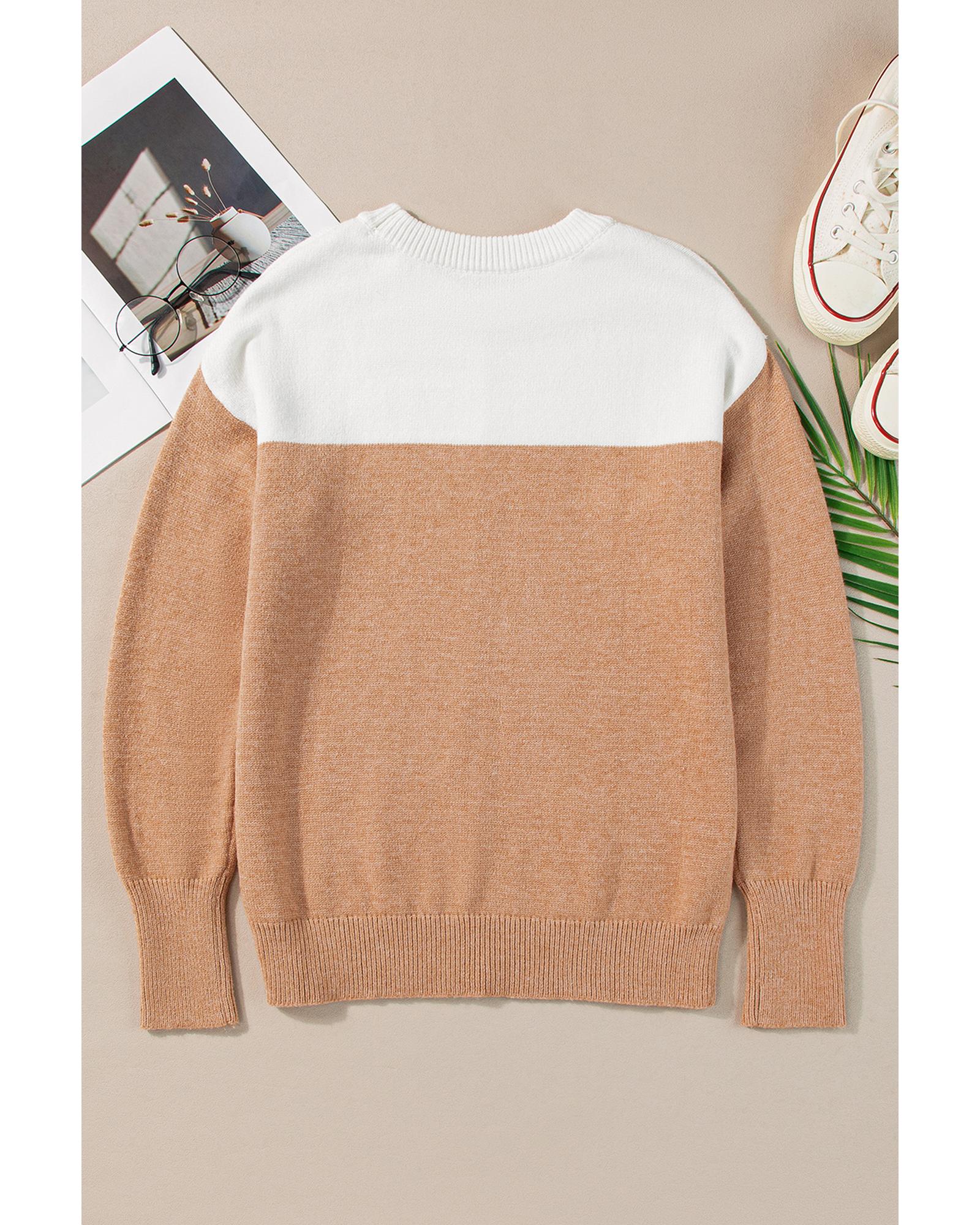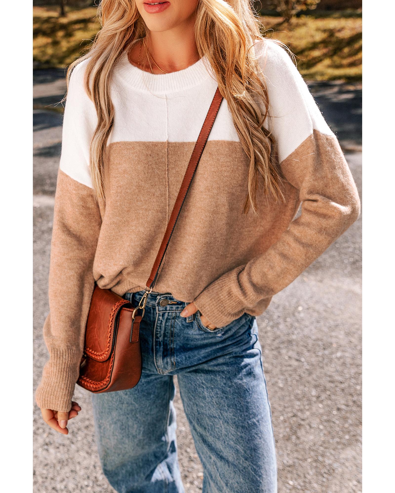 Straw Yellow Colorblock Ribbed Trim Round Neck Sweater - XL Original price was: $64.99.Current price is: $34.99.