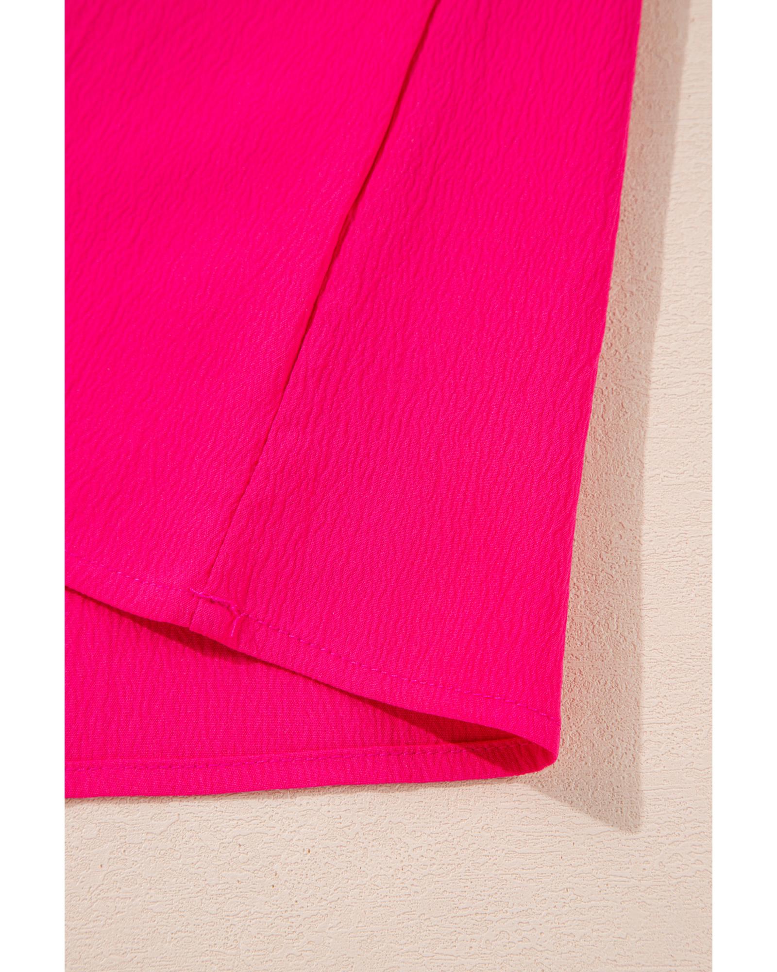 - Strawberry Pink Floral Embroidered Flutter Sleeve Pleated O Neck Plus Size Blouse
