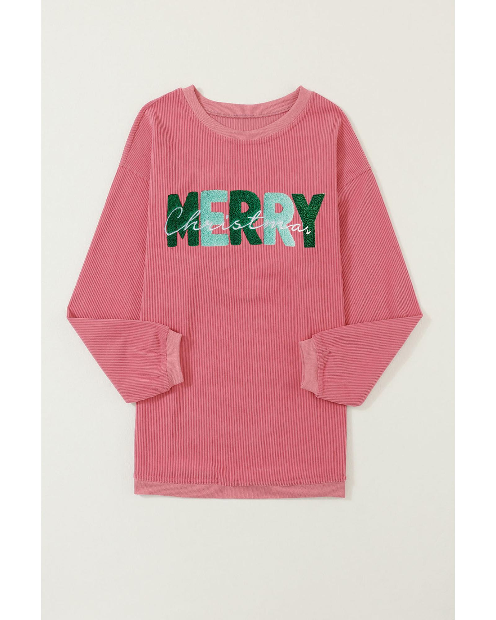 - Strawberry Pink MERRY Christmas Corded Pullover Sweatshirt