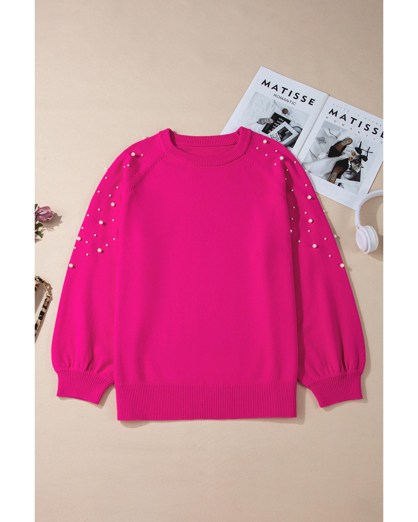 - Strawberry Pink Pearled Decor Raglan Sleeve Plus Size Sweater