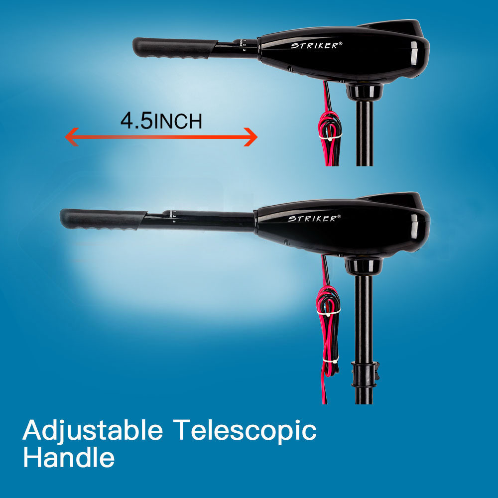 With super-low power consumption, the Genuine Striker gets the most out of your 24V battery. And thanks to its clear LED display, you will always be in control of the power. Suitable for small water crafts such as inflatable boats, canoes and aluminum fishing boats, refer to the below graph for boat size.Your Genuine Striker employs a CAD-designed triple-blade propeller, giving you performance far superior to other blade designs whilst also keeping the weeds away. Simply twist the handle and sneak up on the fish at the optimal speed. With five forward speeds and three reverse speeds, you’ll make the right approach every time.