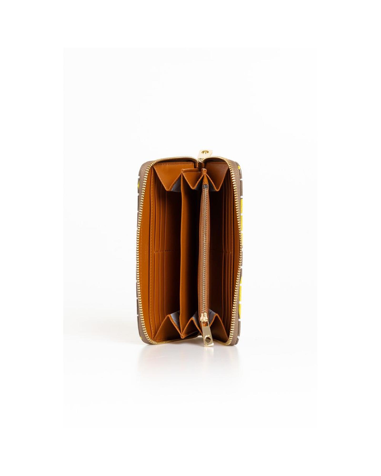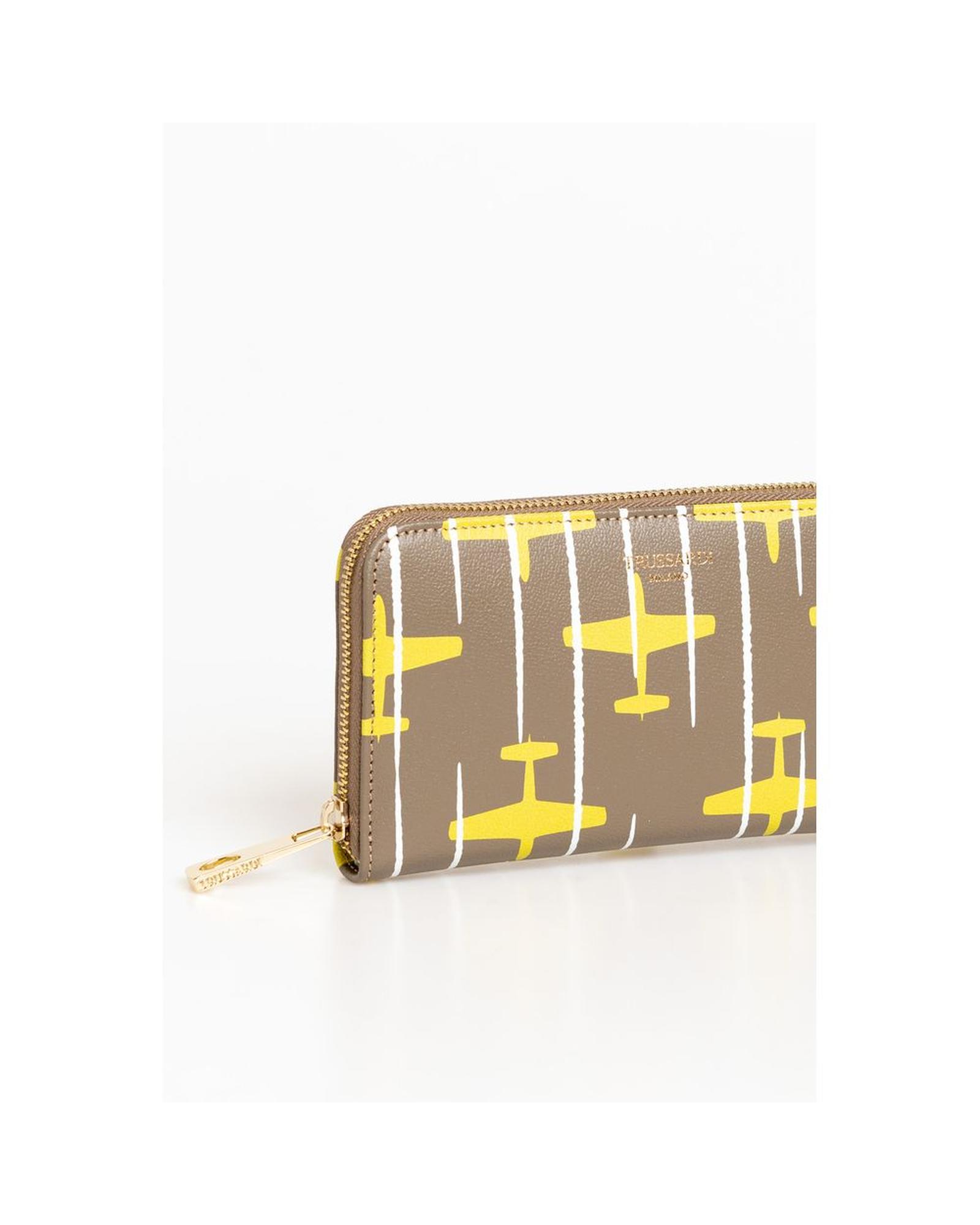 Striped All-over Print Leather Wallet with Airplane Theme One Size Women