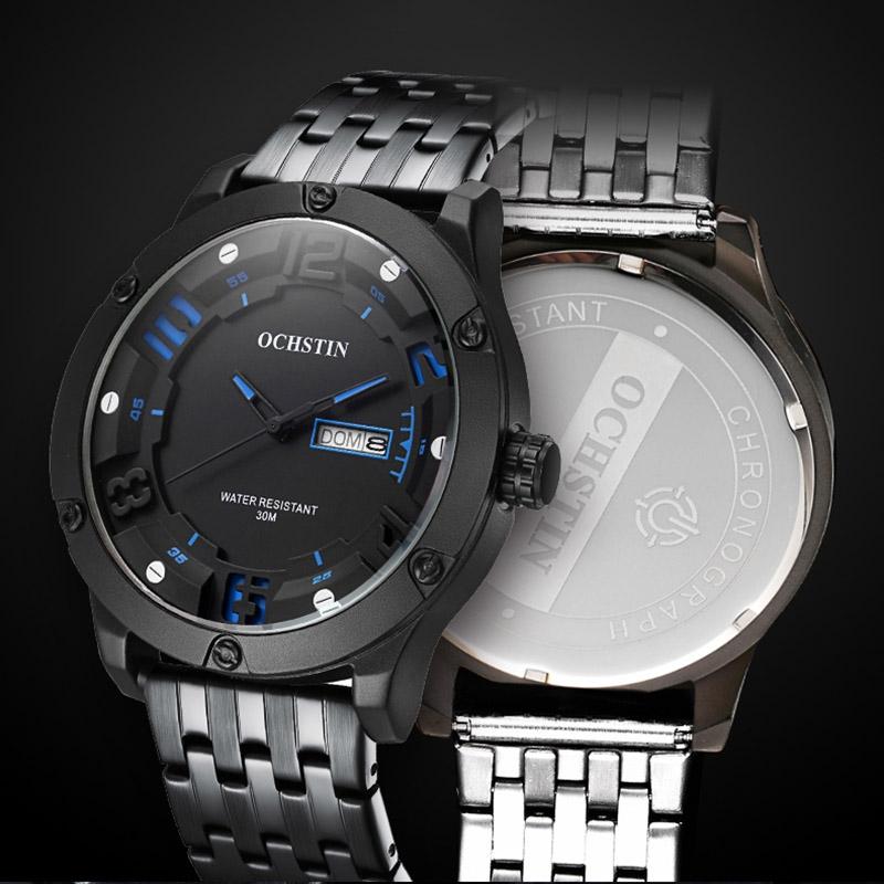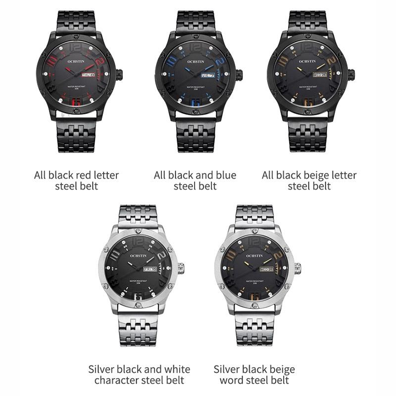 Stylish Day-date Men Quartz Watch with Steel Strap – Black Red