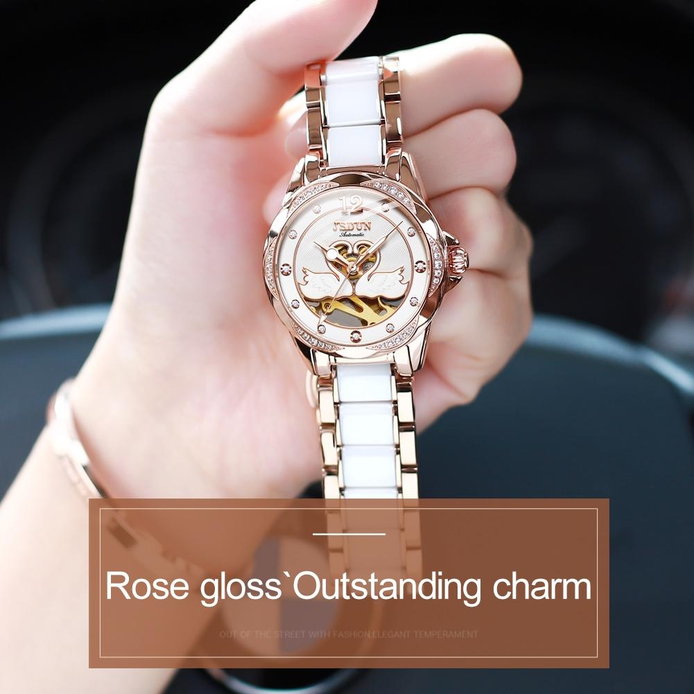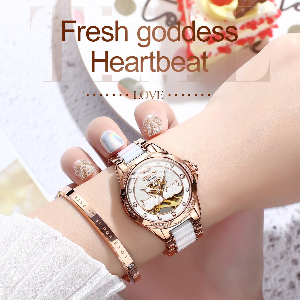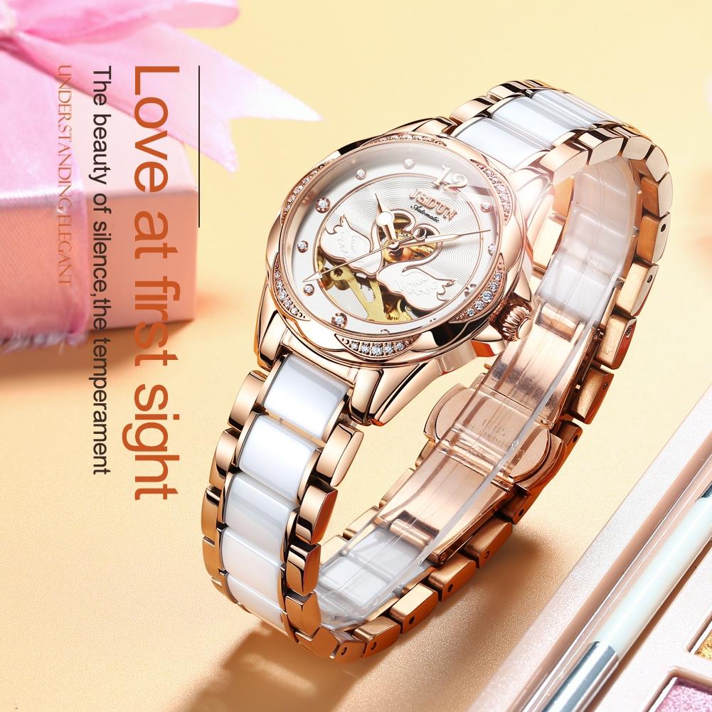 Stylish Waterproof Ceramic Mechanical Watch for Women with Diamond Accents – White