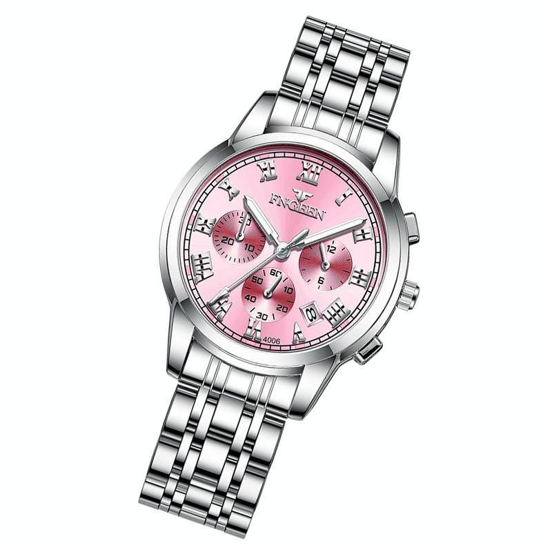 Stylish Women Quartz Watch with Luminous Display and Date – White Steel Pink Surface