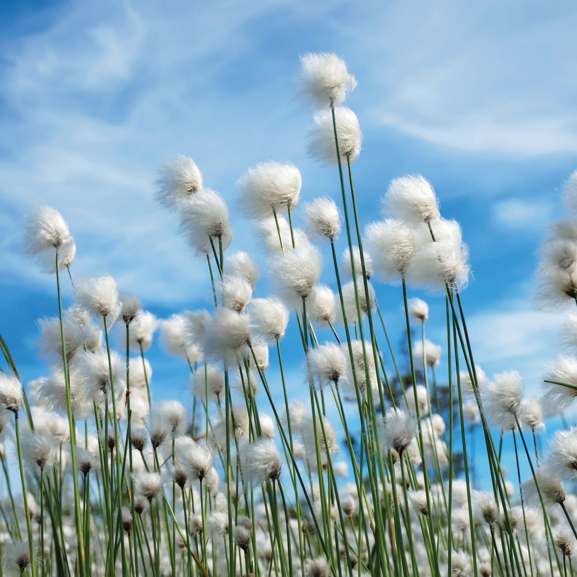 A bright summer day in a field of sun-warmed, natural-grown cotton.