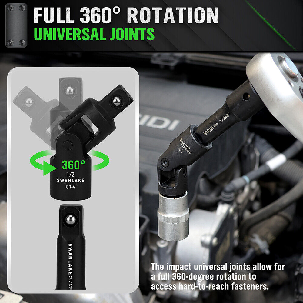 SWANLAKE 18Pcs Drive Tool Accessory Set Extension Bars Impact Universal Joint