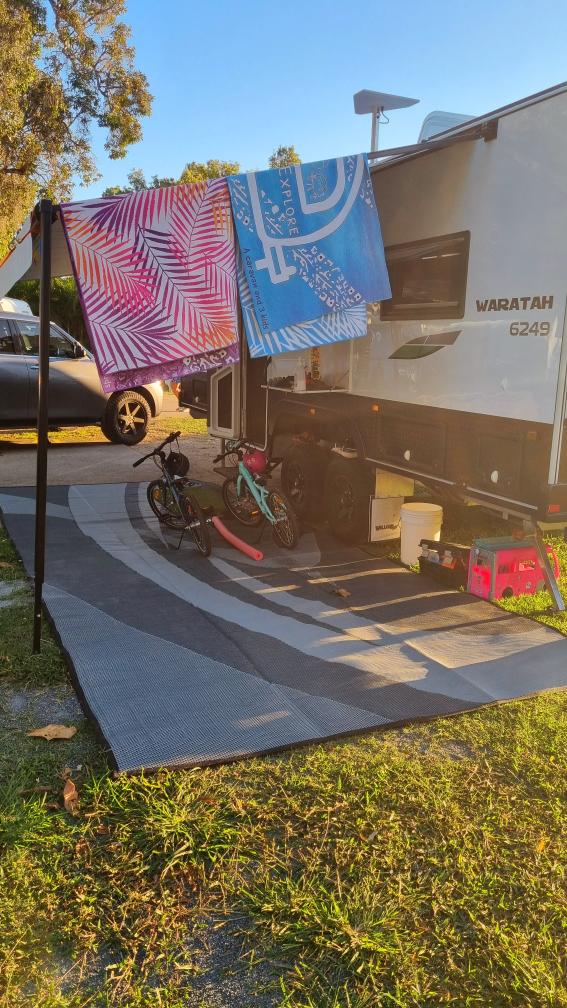 Upgrade your camping experience with our spacious 4m x 2.4m recycled poly mat, perfectly designed for vans 12ft to 18ft (single axle) setups. Lightweight, durable, and eco-conscious, this mat is your ultimate outdoor companion.