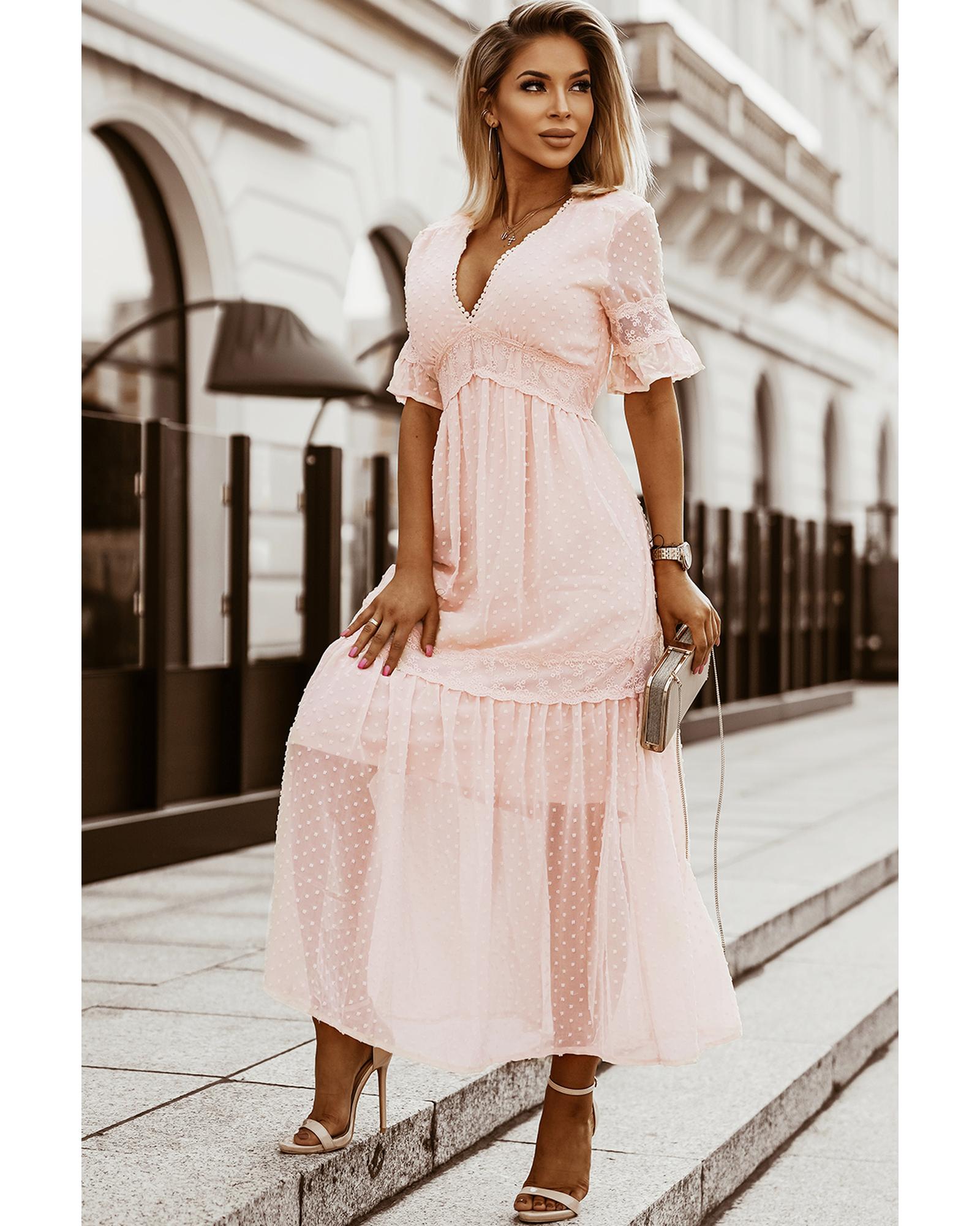 Swiss Dot Lace Trim Maxi Dress – 2XL