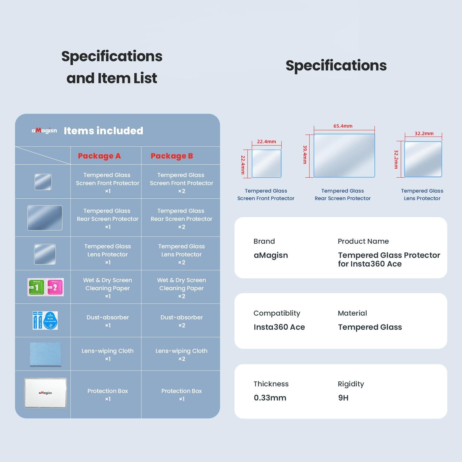 – Rear screen tempered film: about 65.4 x 39.4mm