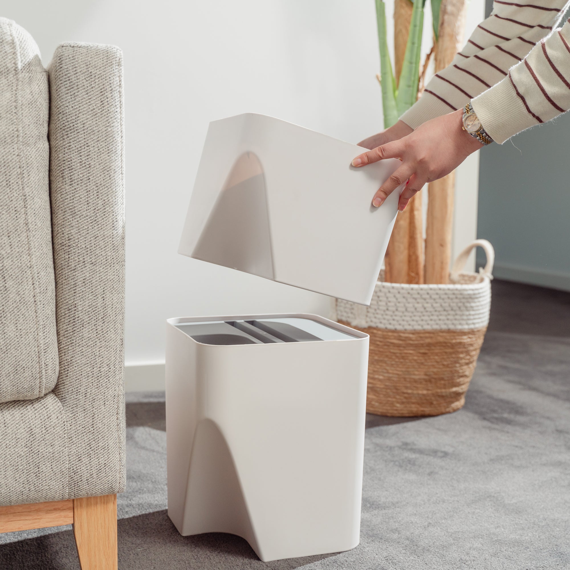 The set of 18L+12L Stackable Plastic Kitchen Trash Bin Household Classification Storage Box