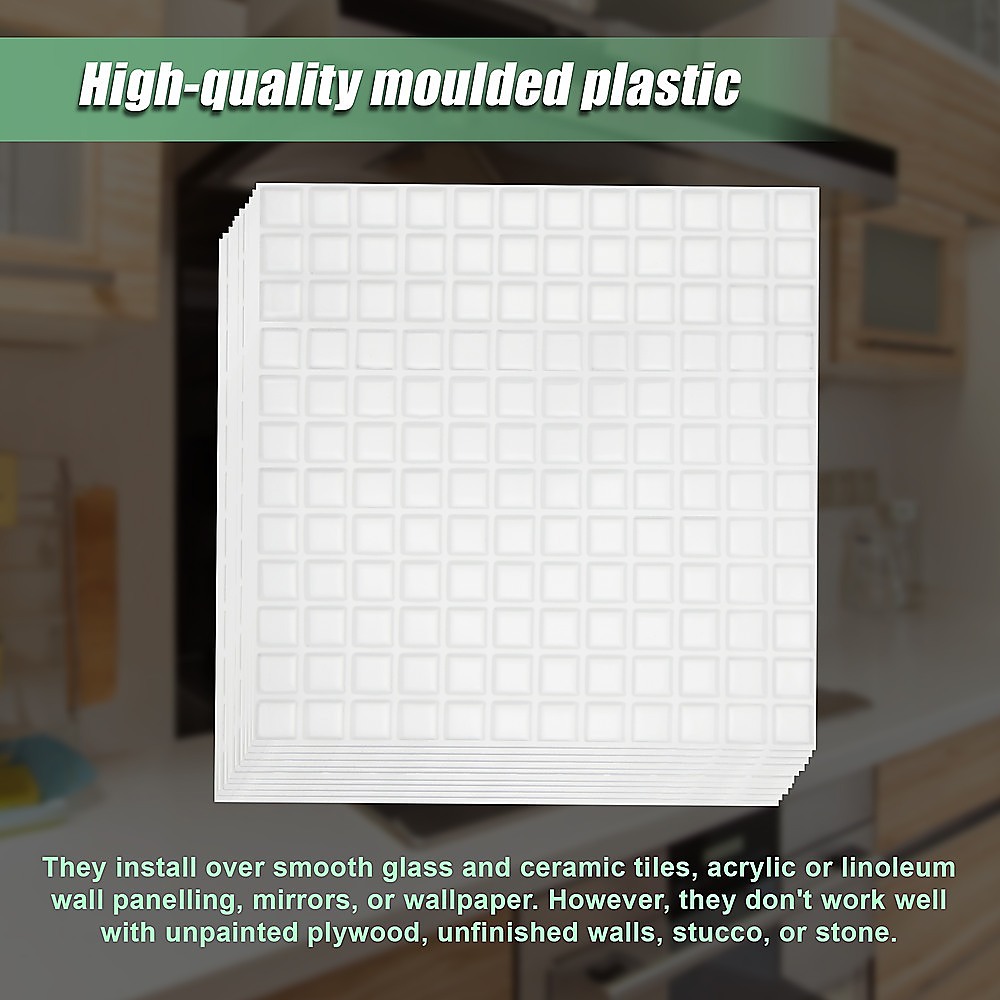 Want the look of clean, ceramic tiles but don't want the hassle of installing it? With these ceramic-look moulded plastic tiles from Randy Travis Machinery, you'll have the best of both worlds. These peel-and-stick tiles are easy to install, but their three-dimensional look replicates the look and feel of ceramic tile. They're perfect for an accent wall, backsplashes for kitchens or bathroom sinks, on your kitchen island or even for your caravan.