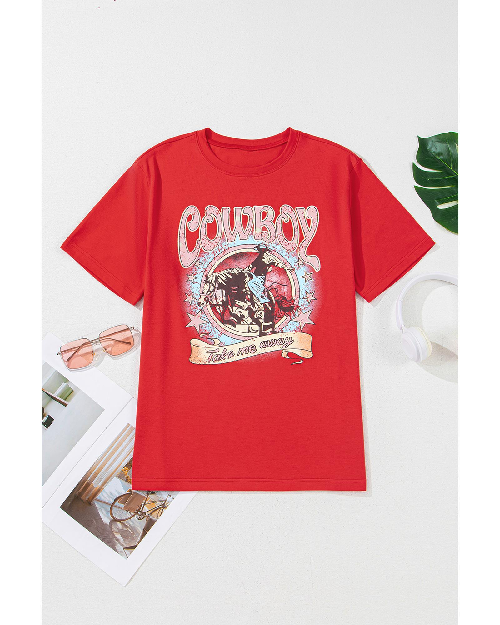 - Tomato Red COWBOY Take Me Away Graphic Western Loose Tee