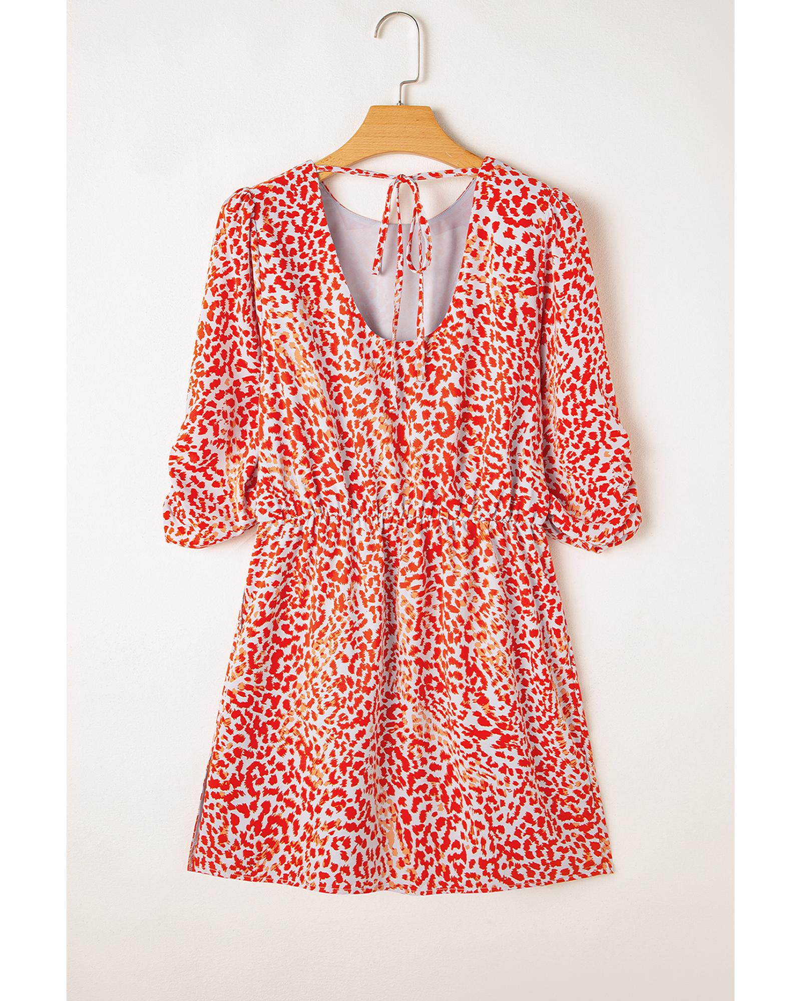 Tomato Red Leopard Print Long Sleeve Hollowed Back Split Mini Dress – XL