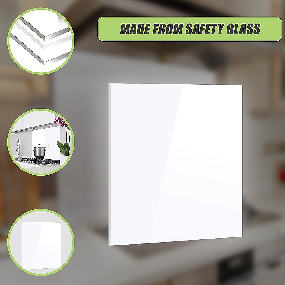 Toughened 90cm x 70cm White Glass Kitchen Splashback