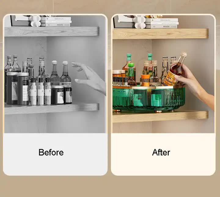Our Luxury Rotating Storage Rack combines functionality with style. Its transparent design and rotating feature make it a versatile and space-saving solution for your kitchen or living room. Perfect for anyone who wants to keep their home organized while adding a touch of elegance to their decor.