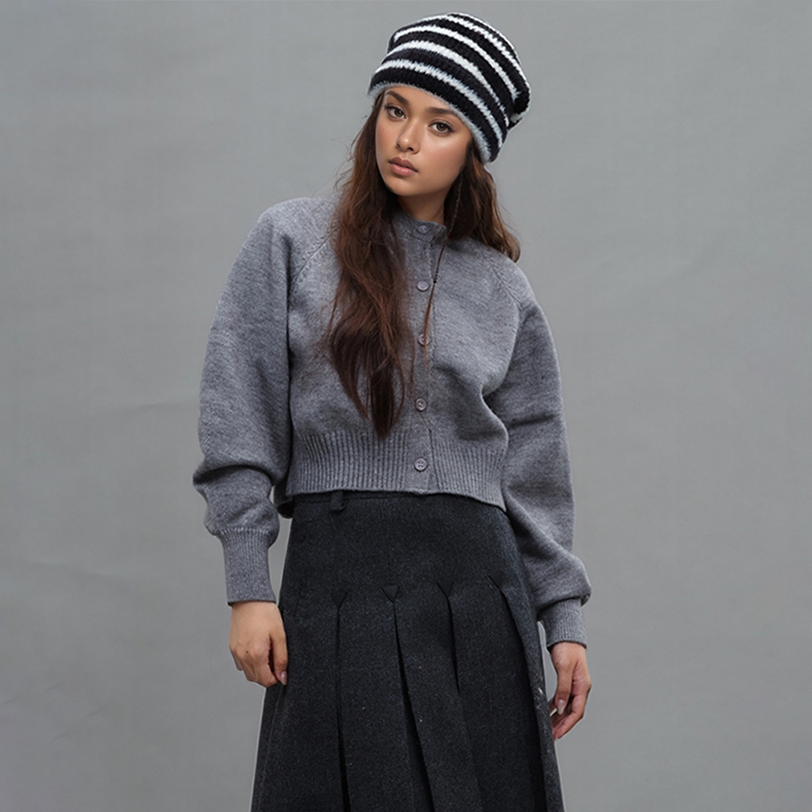 Trendy Dual-Tone Striped Beanie - Soft Plush Knit, Versatile Winter Cap (Gray and white) Original price was: $45.99.Current price is: $24.99.
