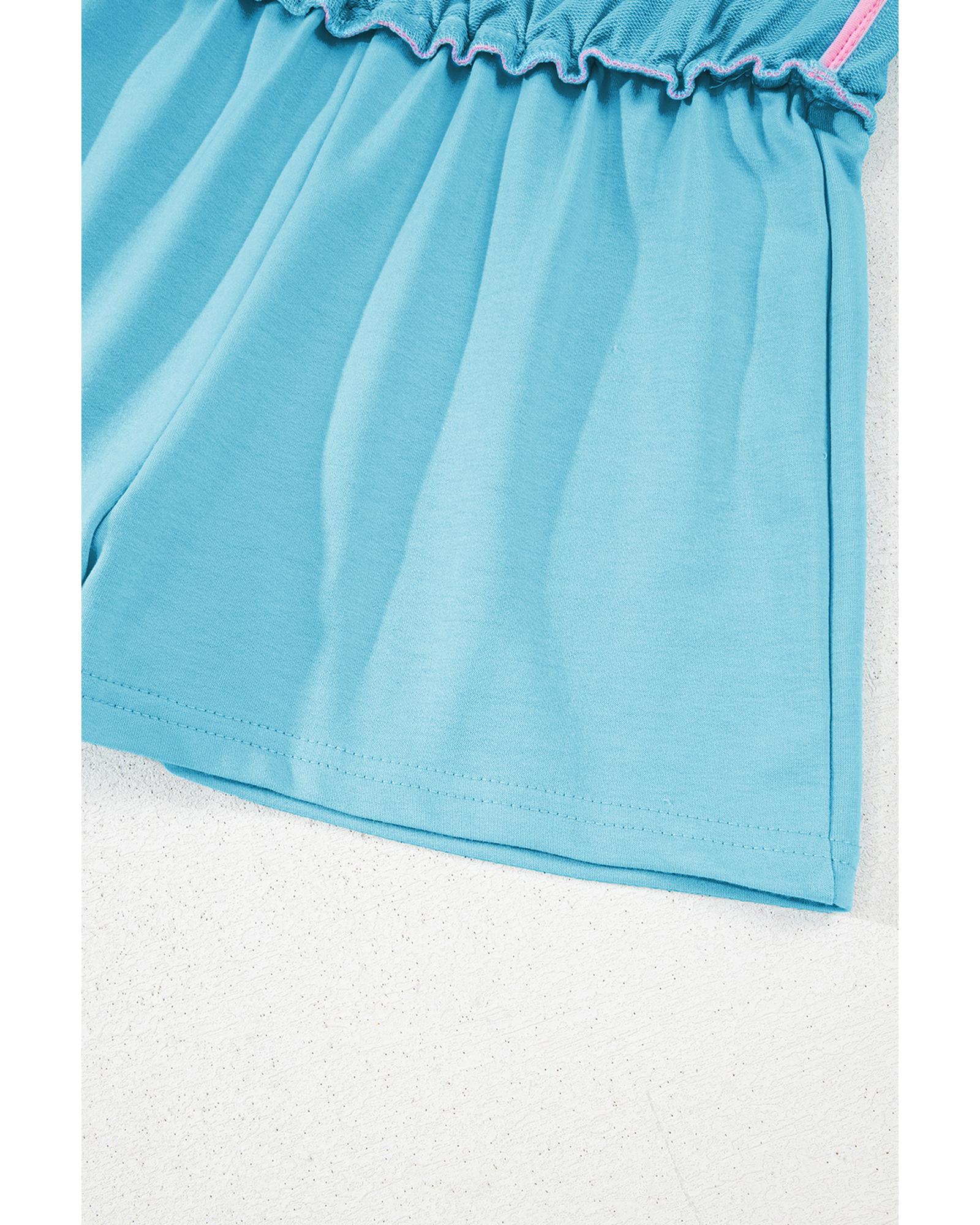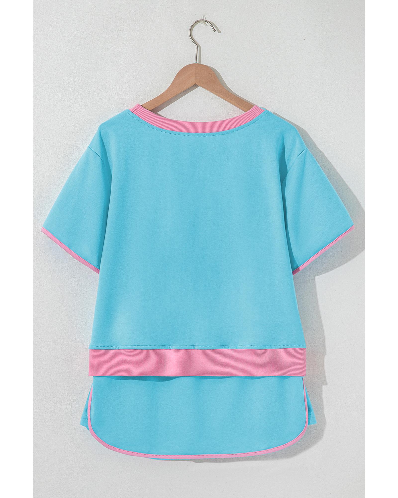 Turquoise Colorblock Edge Drop Shoulder T Shirt and Skirt 2Pcs Set – S