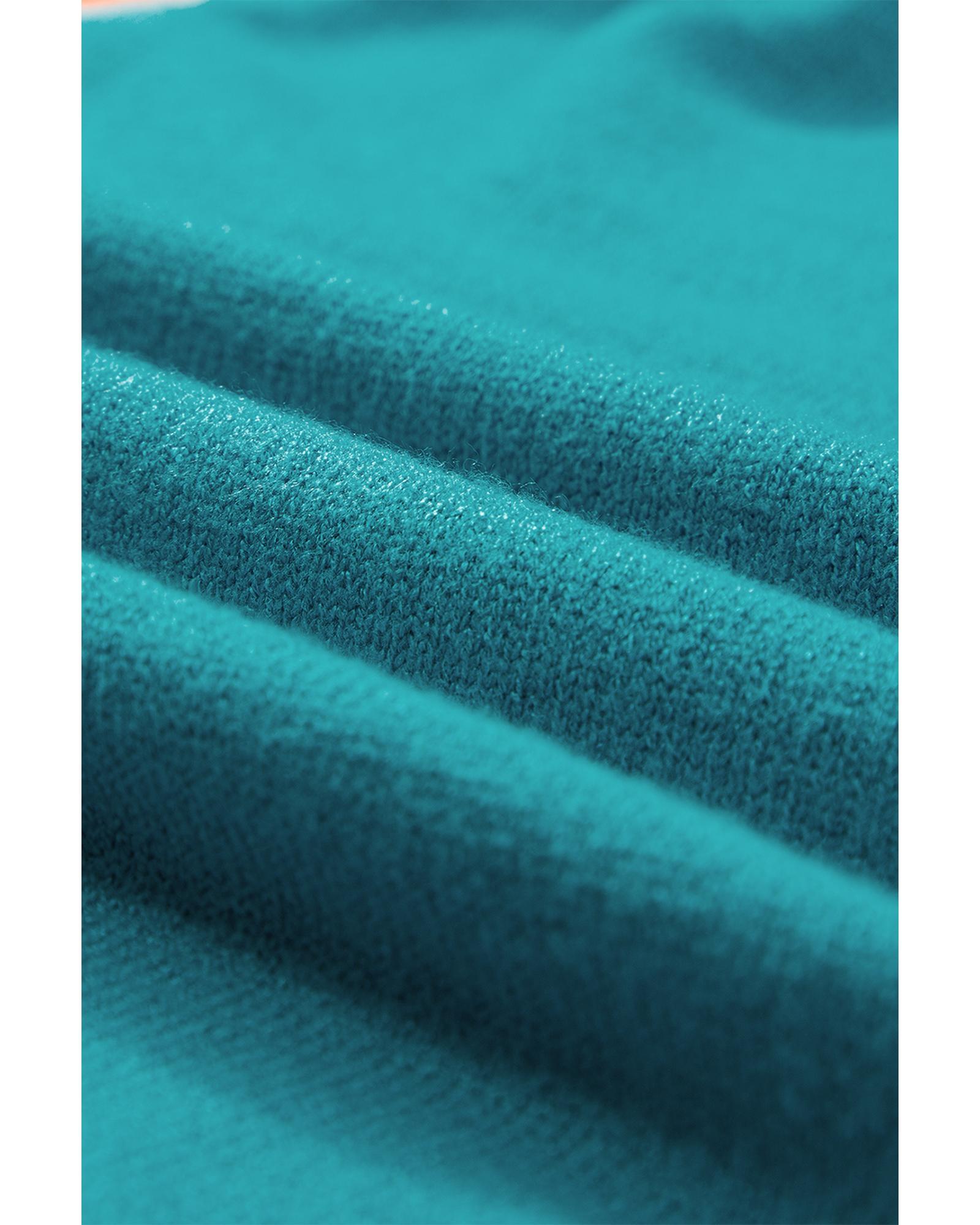 Turquoise Contrast Flutter Sleeves Knitted Sweater T Shirt – S
