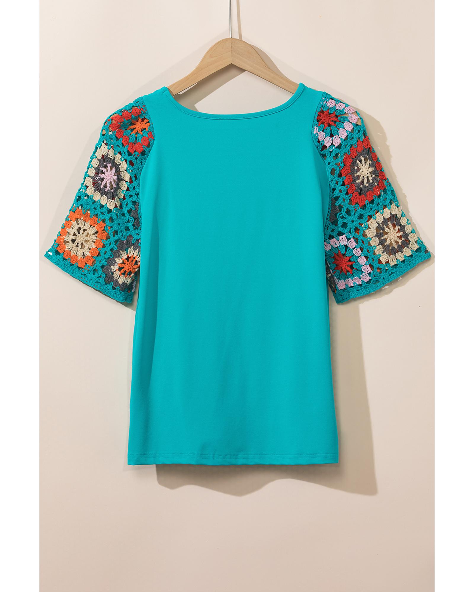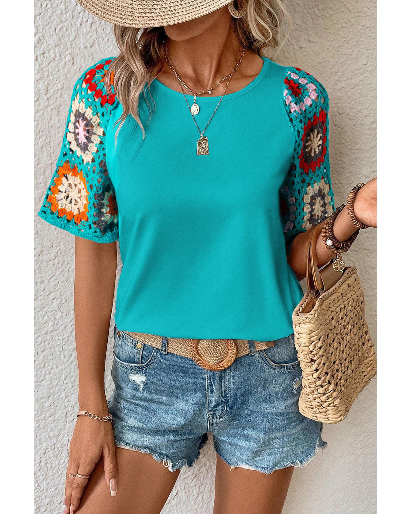 Blue Ruffle Off Shoulder Flounce Sleeve Floral Blouse - M