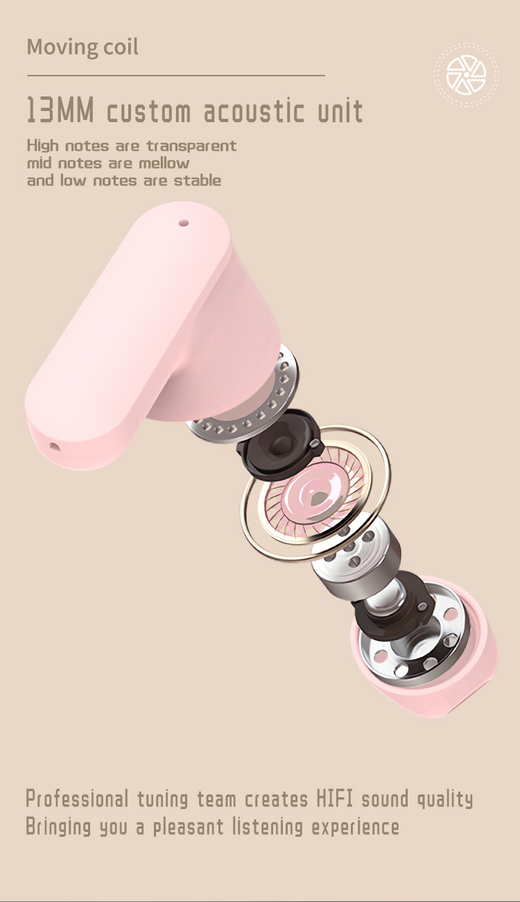 - HIFI Sound Quality: A 13mm custom moving coil acoustic unit, tuned by a professional team, delivers a pleasant listening experience with clear highs and mellow lows.