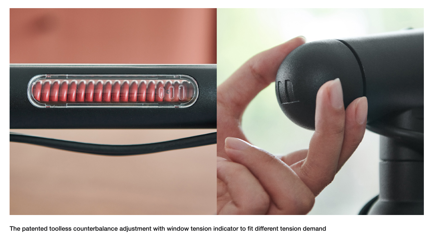 • Counterbalance Adjustment: Patented toolless system with indicator