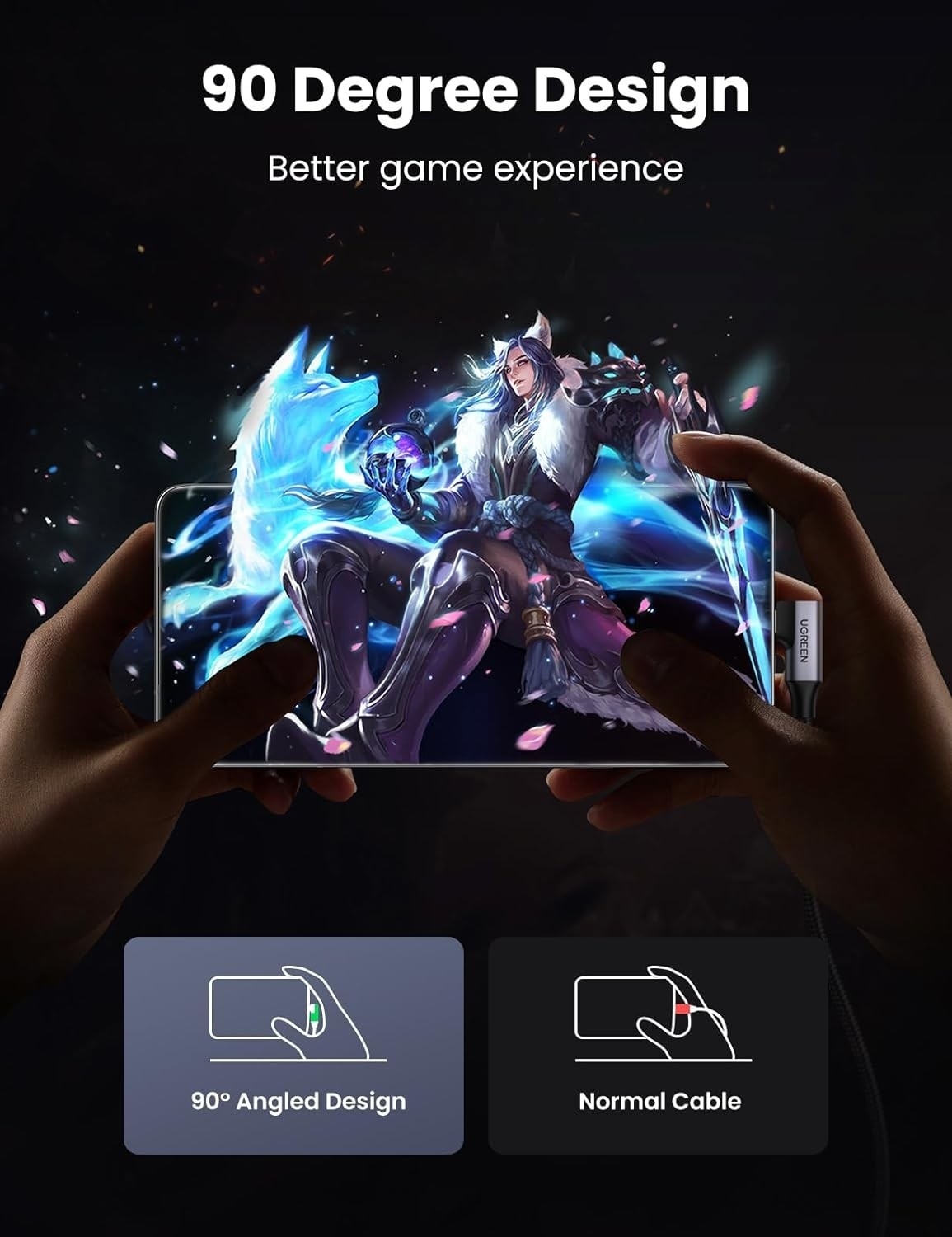This USB A to USB C fast charging cable with an innovative 90 degrees L design. Reduce the use of bent cables, protect equipment interfaces, and extend service life. It is more convenient to play games and watch videos while charging.