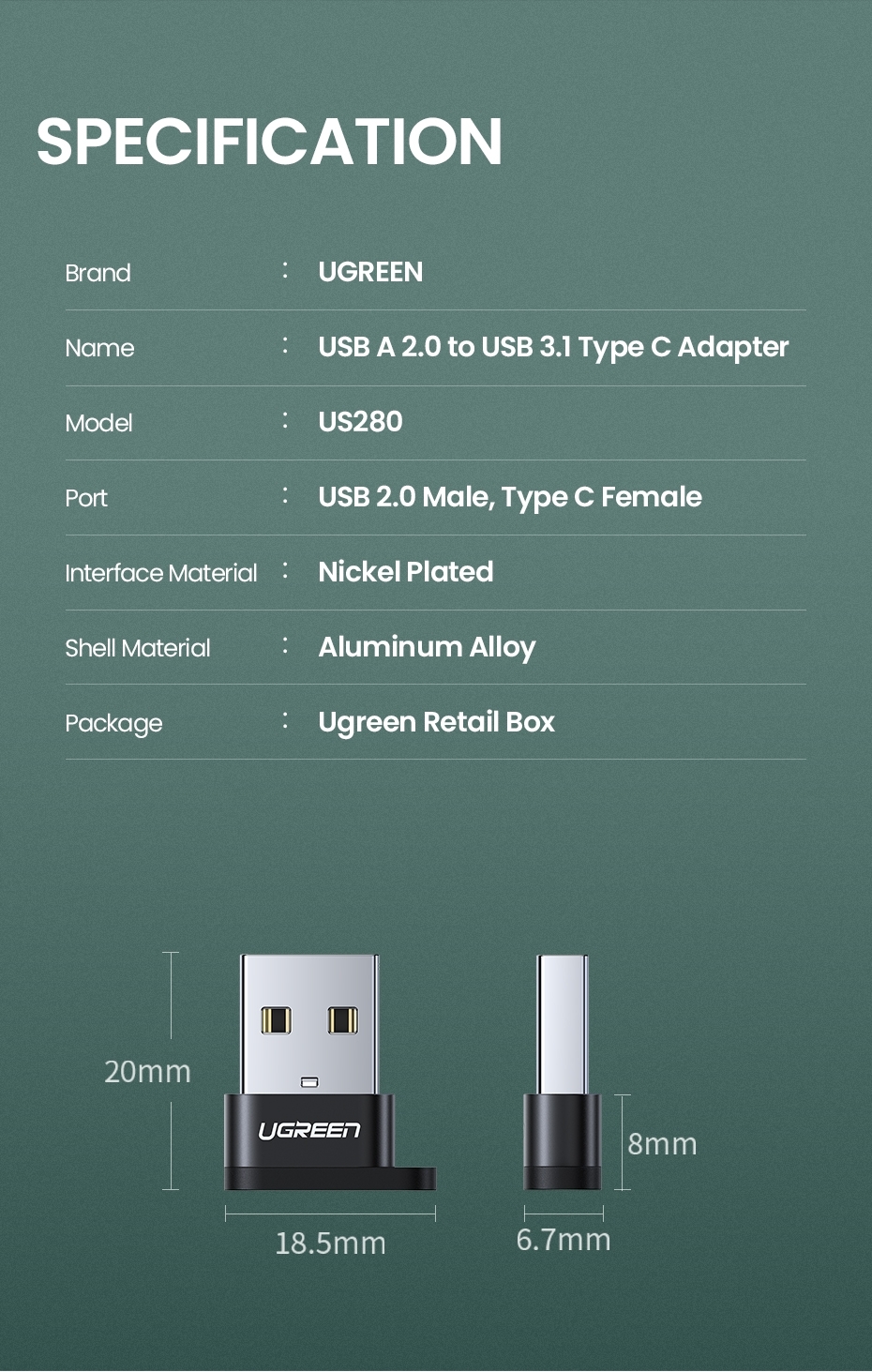 UGREEN Type C to USB A adapter used to turn all you USB-A ports of laptops, chargers, or other devices into a USB-C port, gives you the ability to connect USB-C peripherals to devices with USB-A ports.