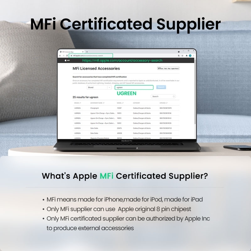 UGREEN 60761 USB-C to iPhone 8-pin Fast-Charging Cable 2M