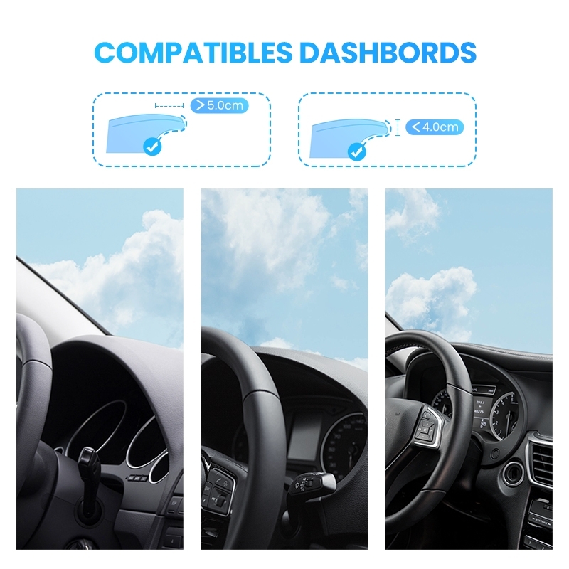 UGREEN Dashboard HUD Car Clip Holder secures your cell phones right above the steering wheel without blocking the driving view. With HUD(Head-Up Display) design, the Dash Clip Car Mount keeps your phone/Sat Nav right in front of you, so you no longer need to look down or turn your head to read the information, which greatly improves your safety.