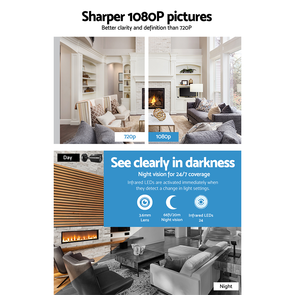 UL-tech CCTV Security System 8CH DVR 4 Cameras 2TB Hard Drive