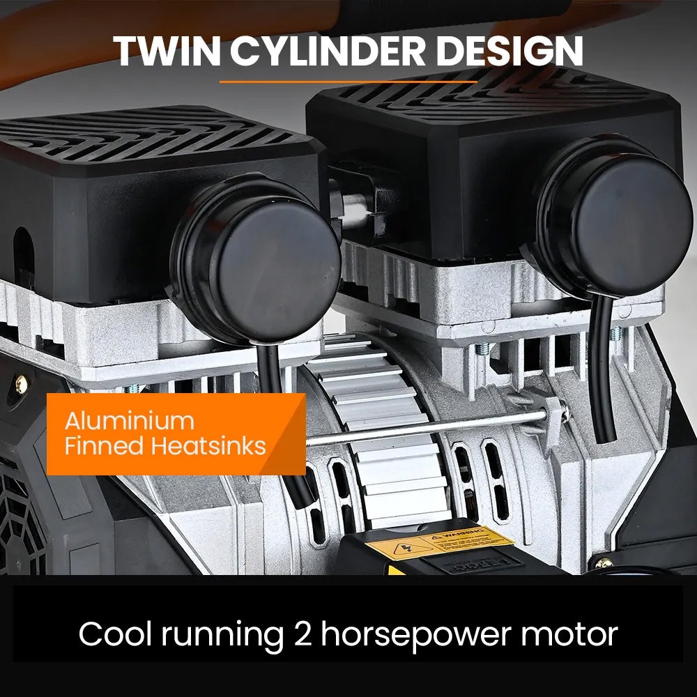 Unimac 16L Silent Oil-Free Electric Air Compressor, 116PSI Portable with Wheels and Handle, Twin Nitto Outlets for Airtools, Tyre Inflation