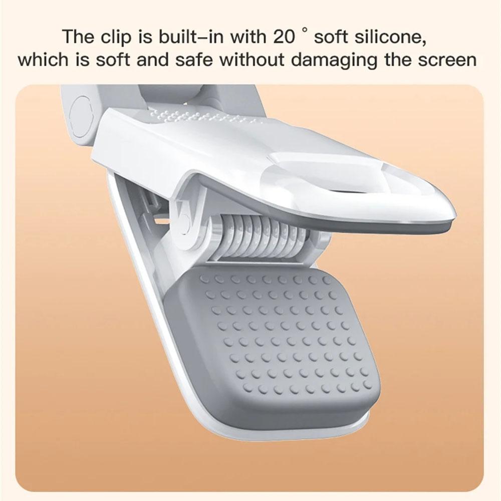 • Soft silicone built into the clip to protect screens from damage