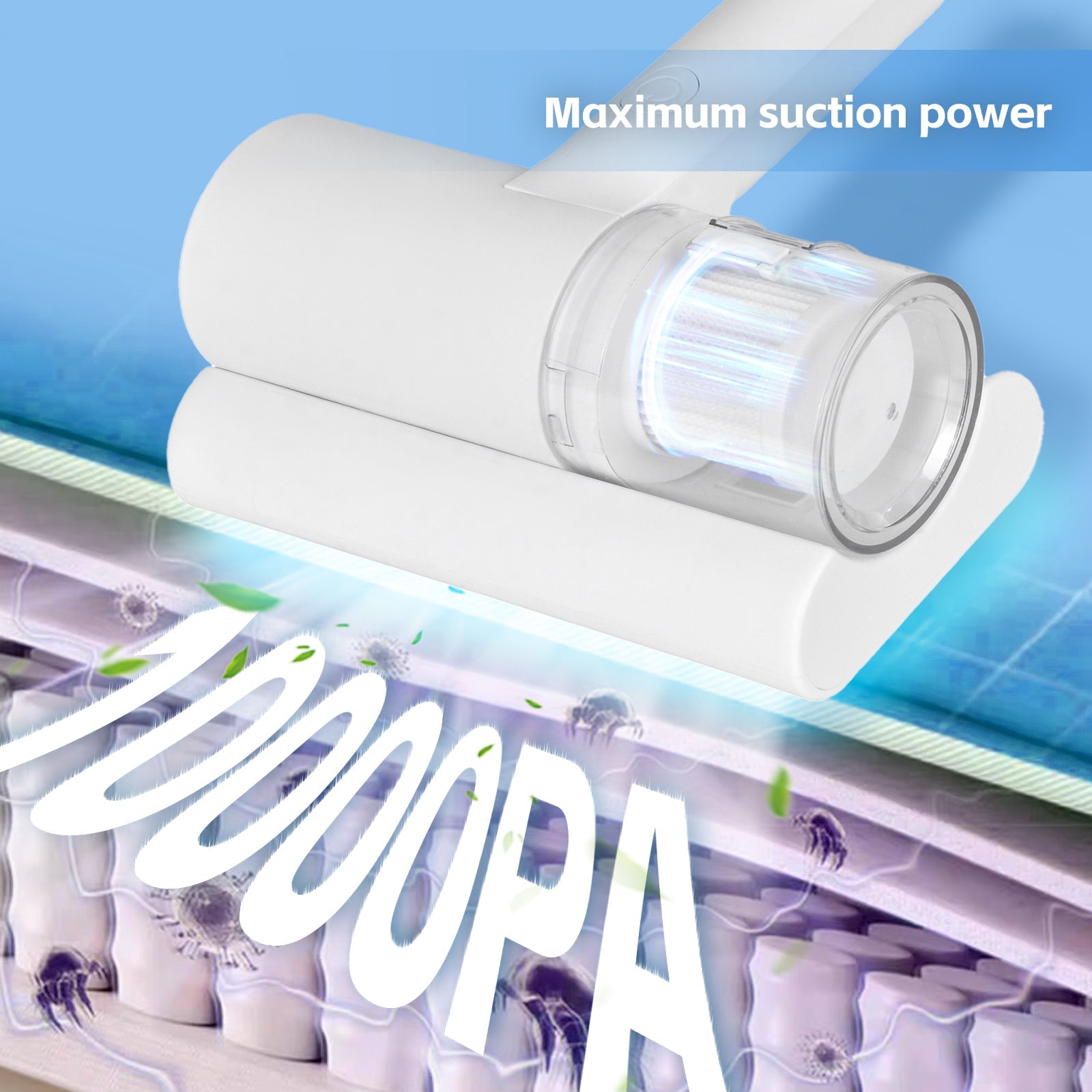 UV‑C Cordless Dust Mite Vacuum Handheld Sanitizing Cleaner with 1200 mAh Battery