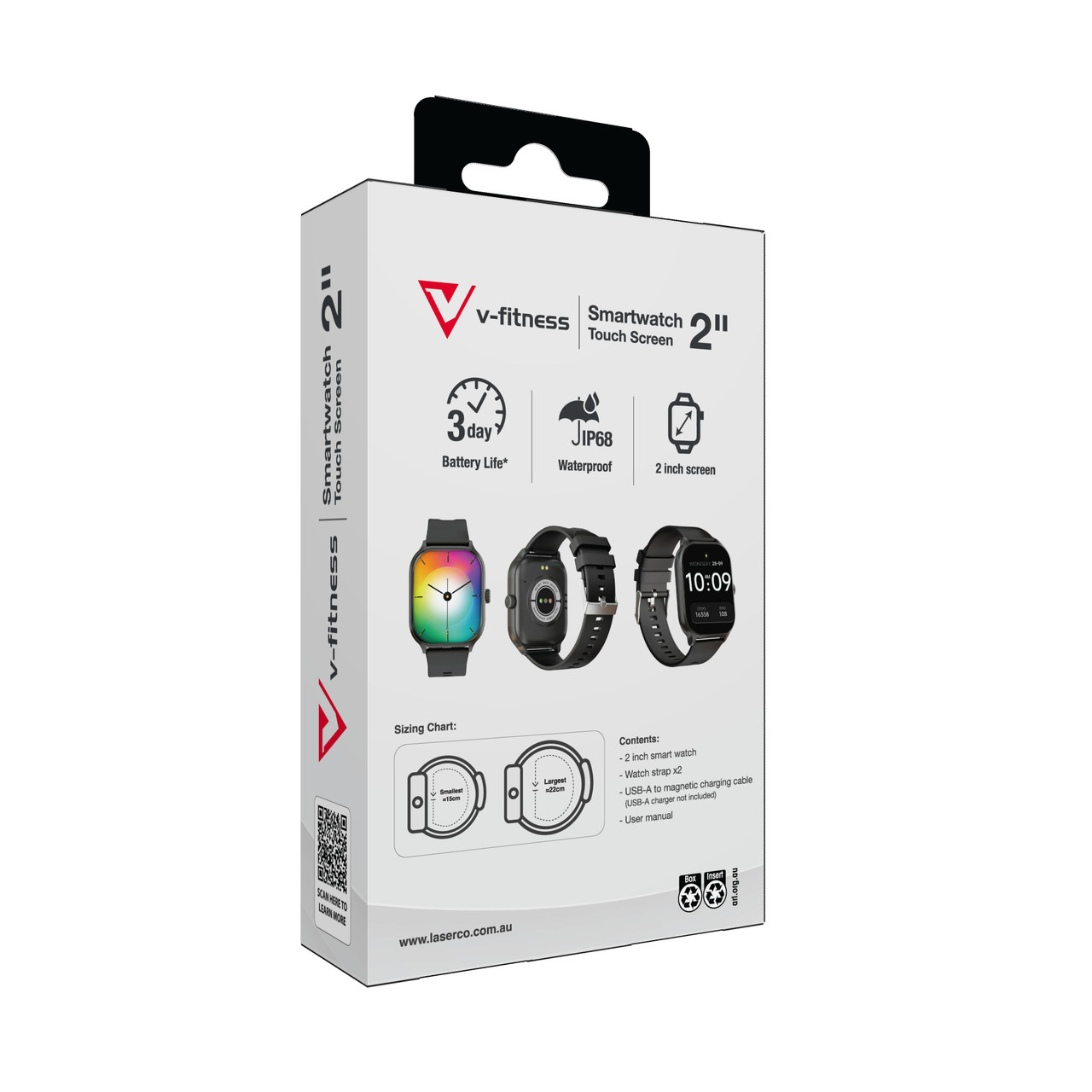 V-Fitness Smart Watch 2 Inch Touch Screen – Black