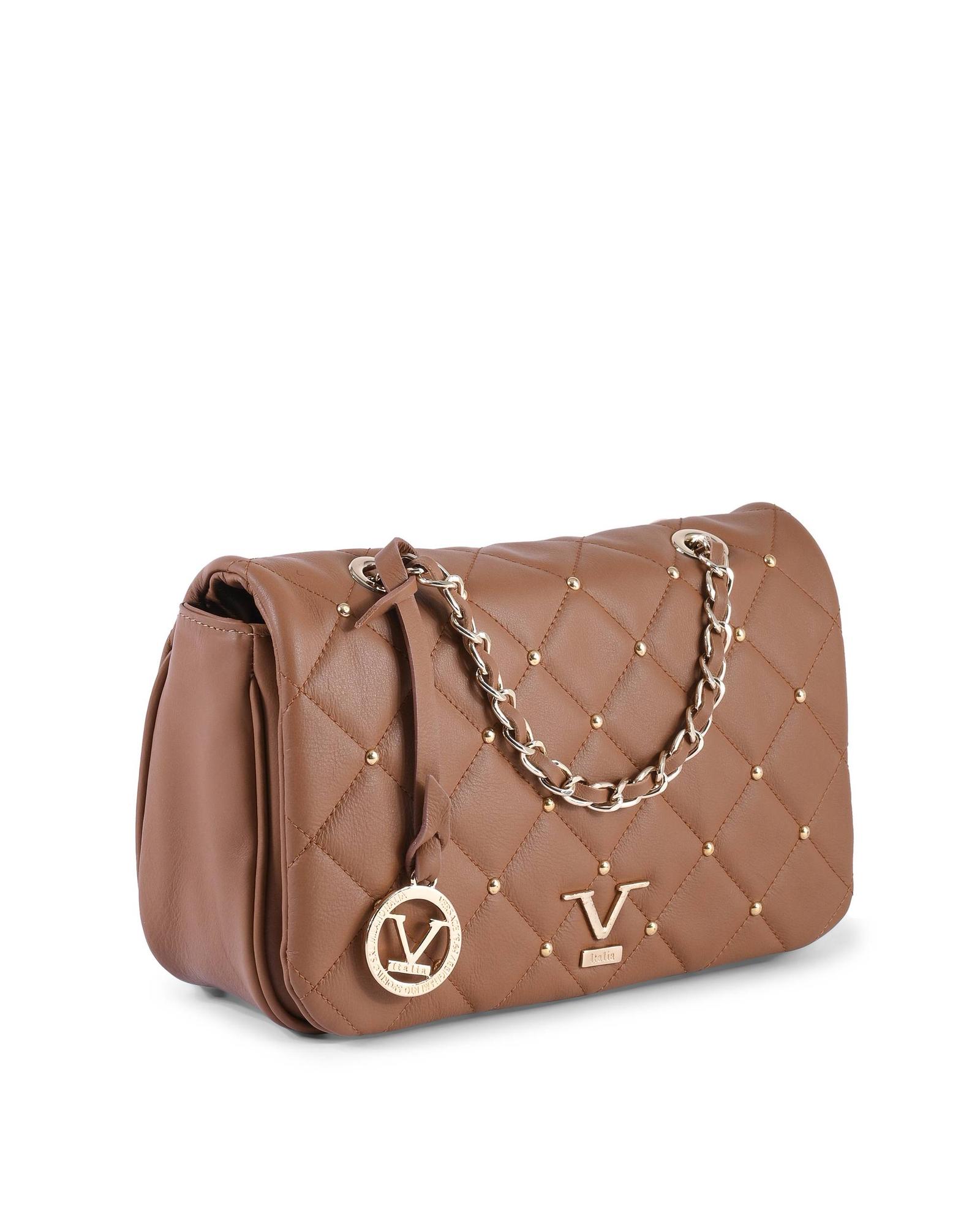 V Italia Brown Quilted Leather Shoulder Bag with Chain Strap – One Size