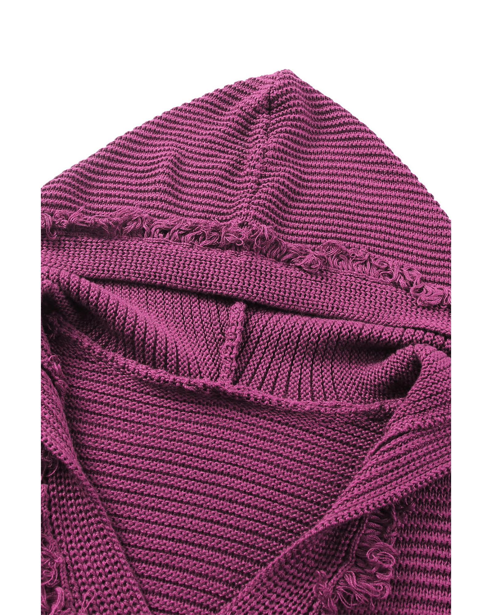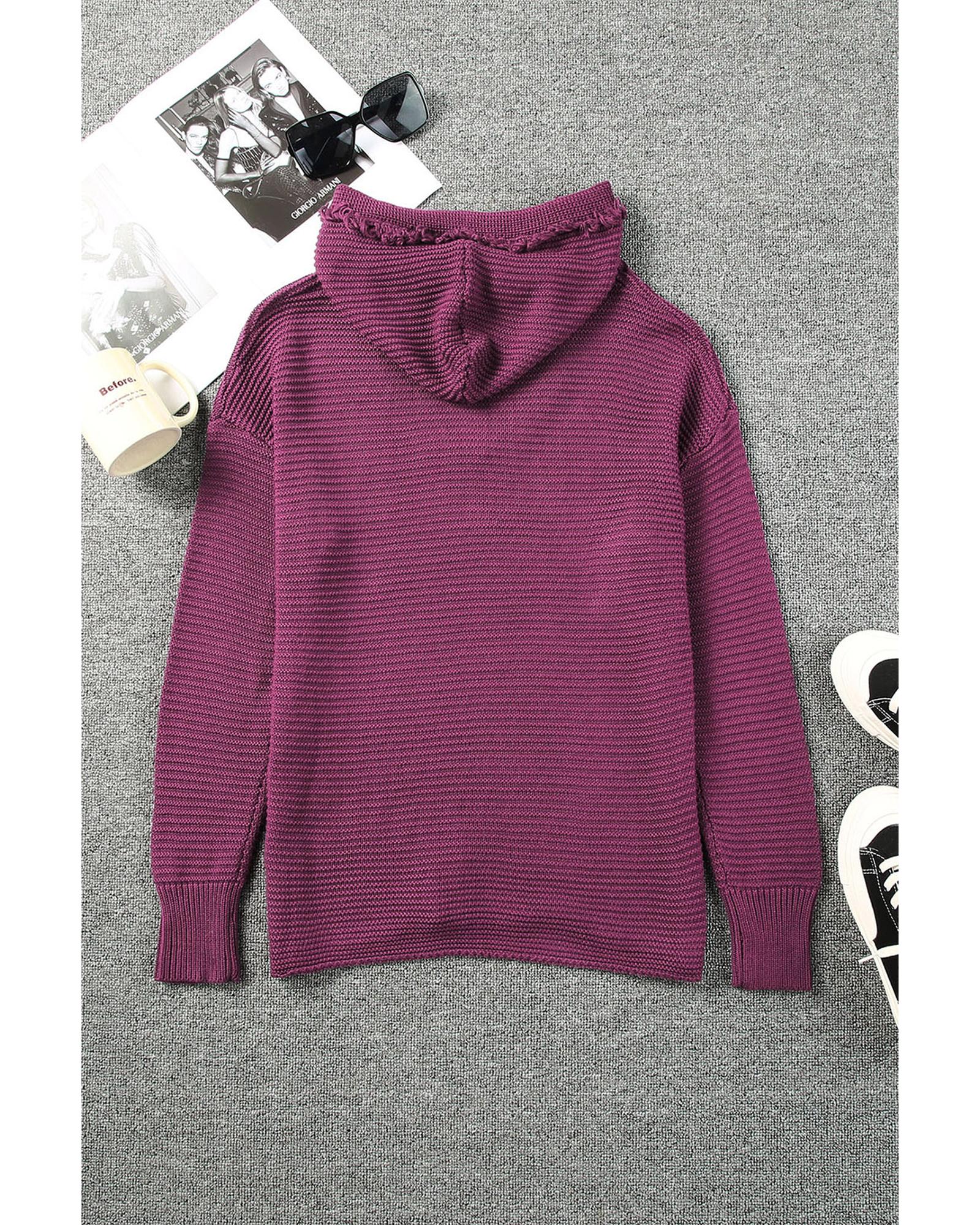 V Neck Ribbed Drop Shoulder Hooded Sweater – XL