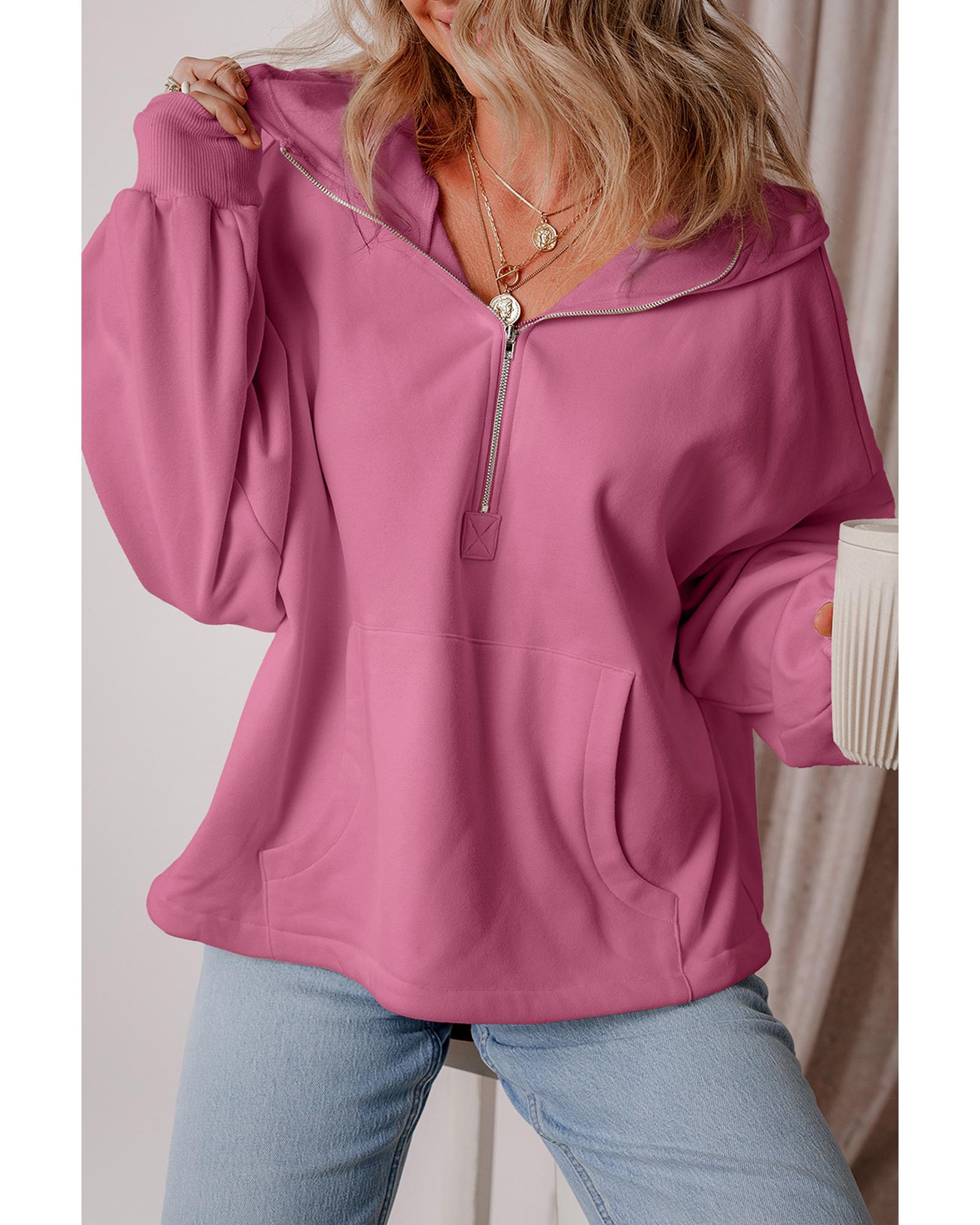 Valerian Fleece Lined Half Zipper Kangaroo Pockets Loose Hoodie – XL