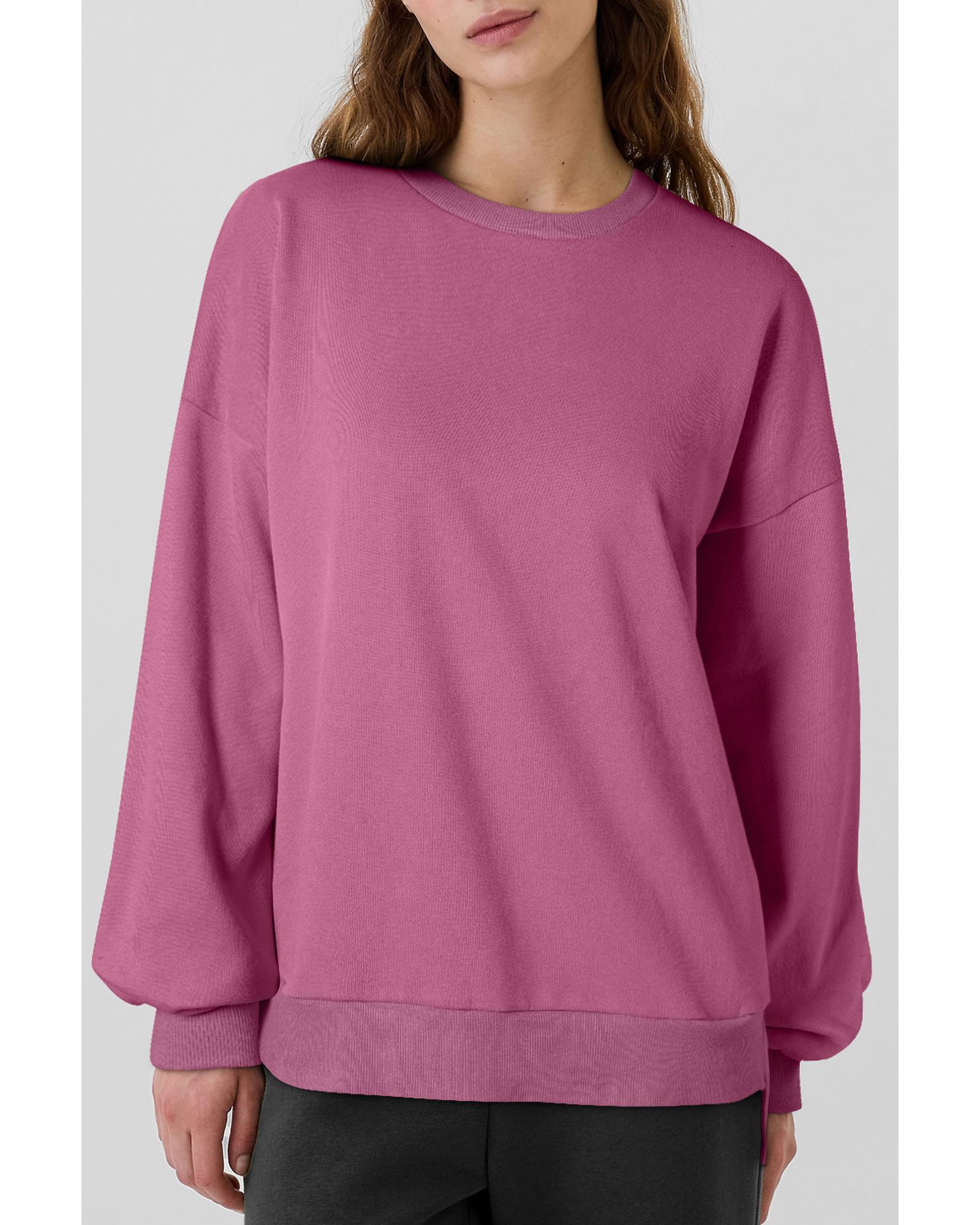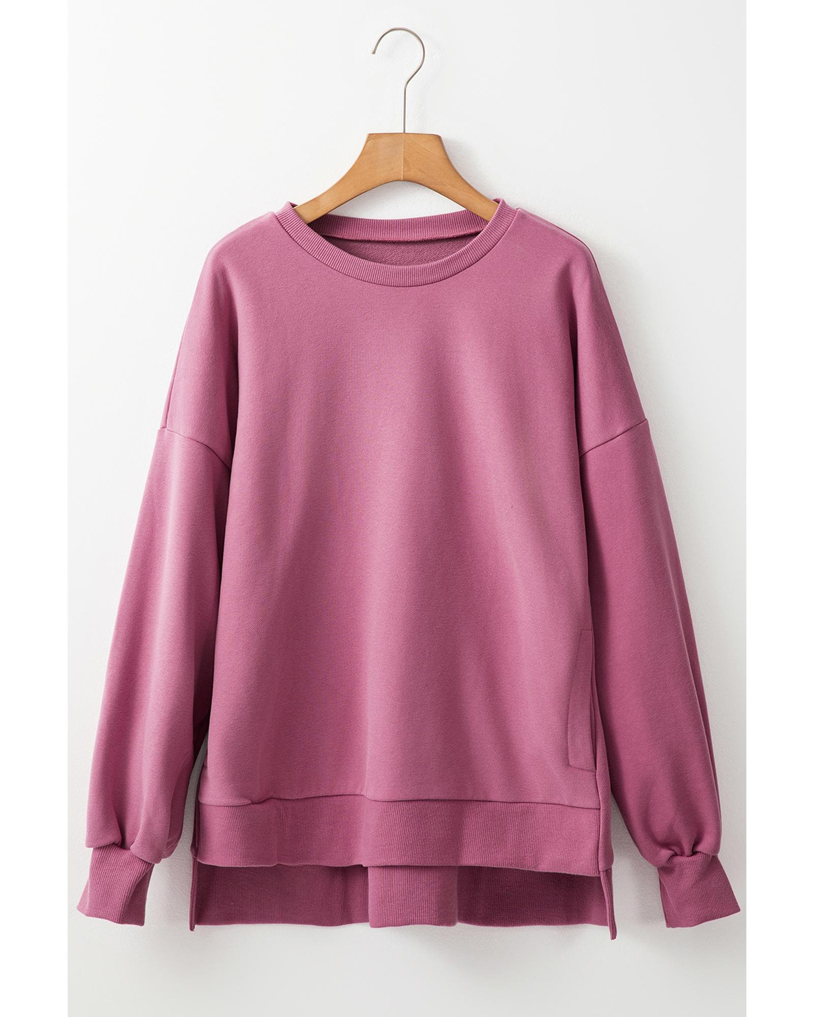 Valerian Solid Fleece Lined Drop Shoulder High Low Sweatshirt – S
