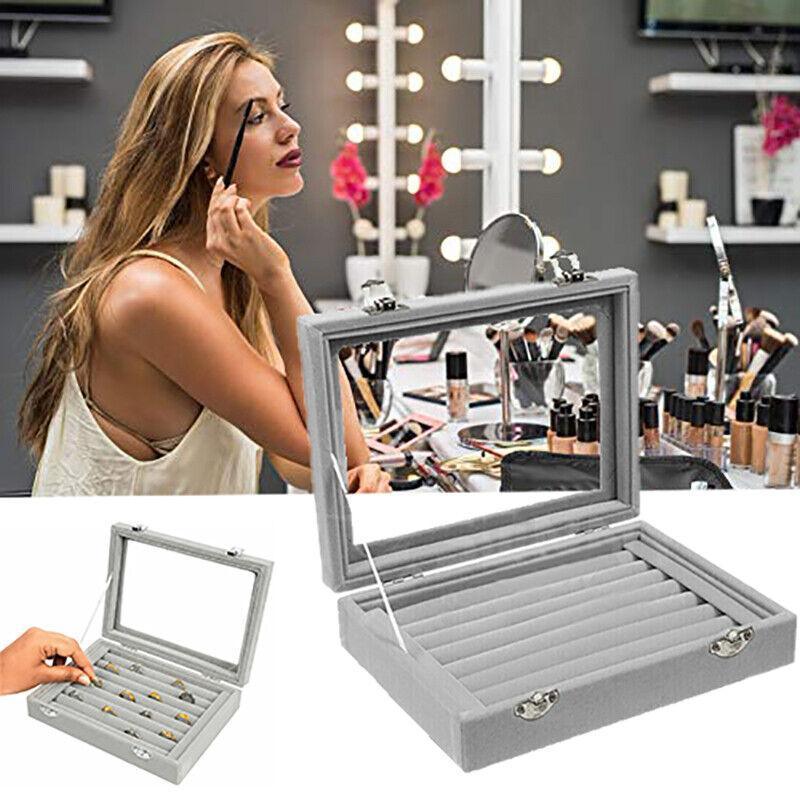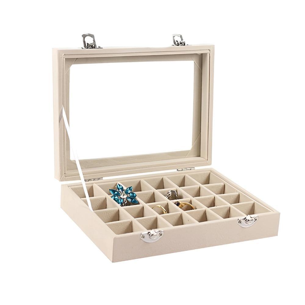 Velvet Ring Earring Jewelry Display Organizer Box Tray Holder Storage Case – Beige