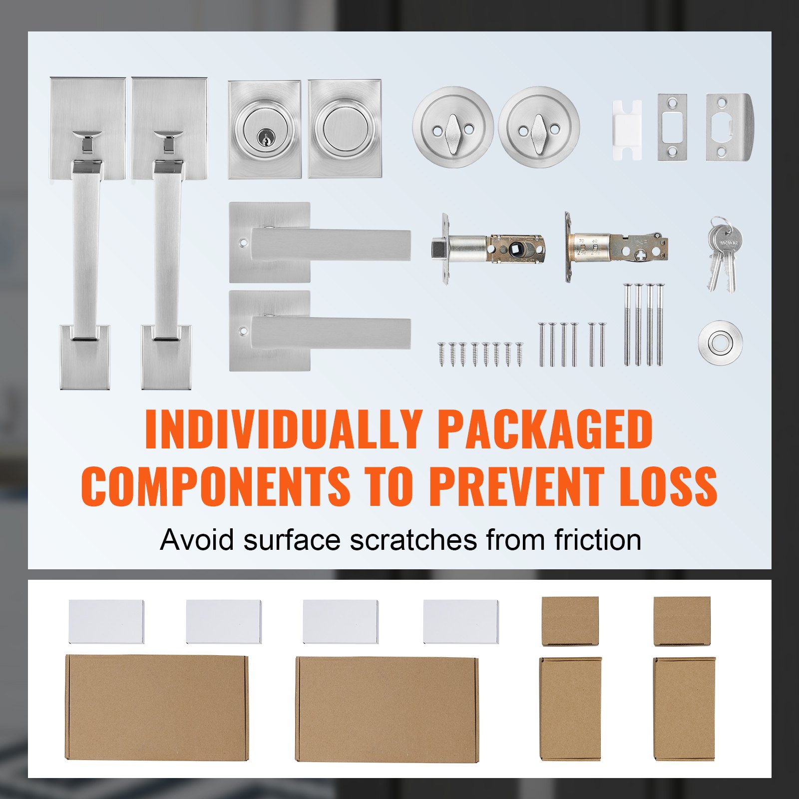 Each component of the French door lock set is meticulously packaged to prevent loss and minimize the risk of surface scratches due to friction, preserving the overall aesthetic appeal.
