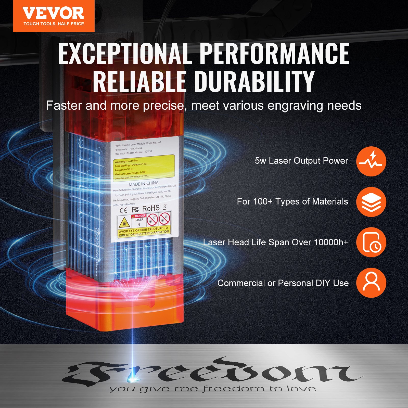 VEVOR Laser Engraver, 5W Output Laser Engraving Machine, 16.1″ x 15.7″ Large Working Area, 10000mm/min Movement Speed, Compressed Spot with Eye Protection, Laser Cutter for Wood, Metal, Acrylic