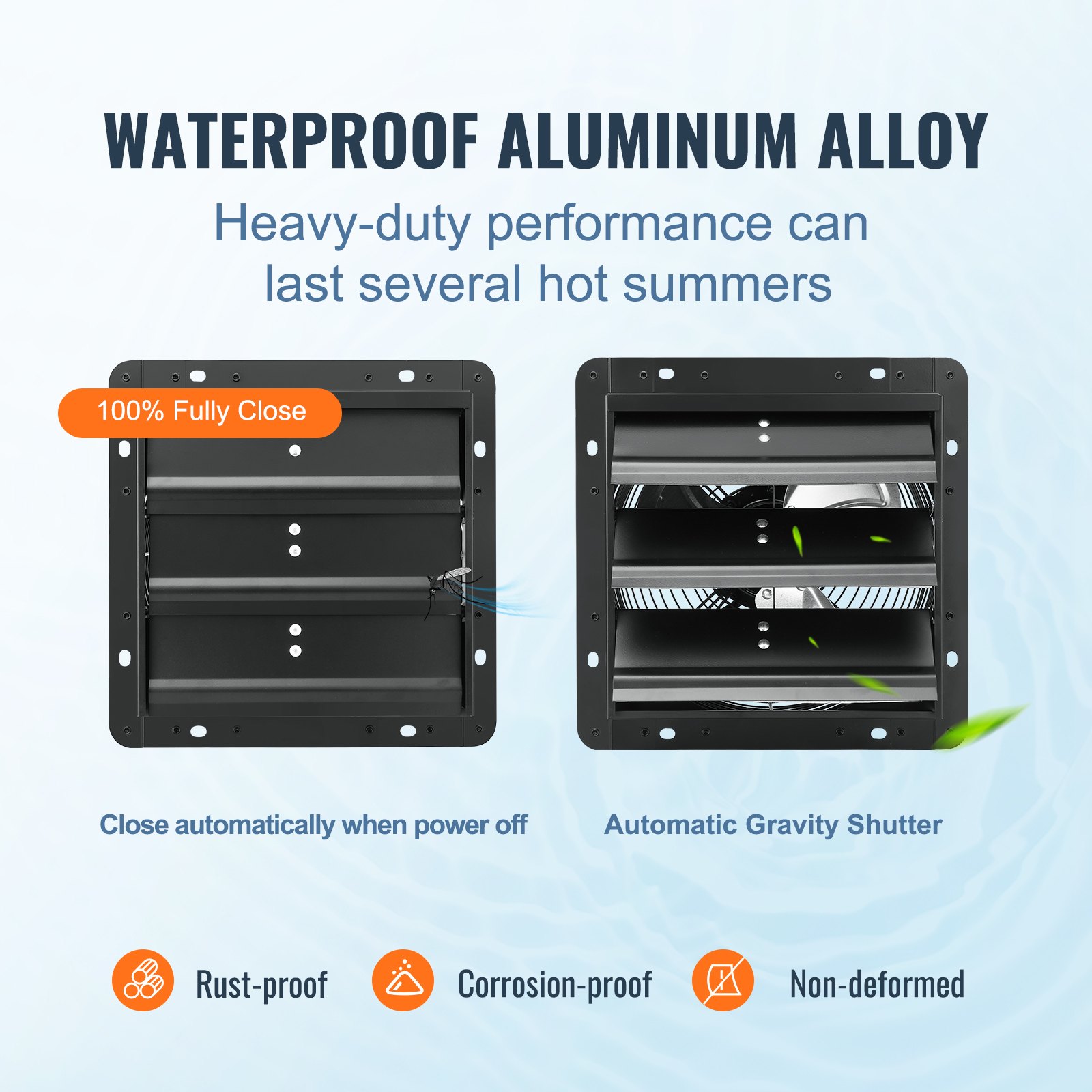 The high-quality materials used in the housing and grille ensure that the fan maintains excellent performance even in harsh weather conditions like rain and snow. The louvered fan automatically shuts down during the winter when not in use to help maintain indoor temperature.