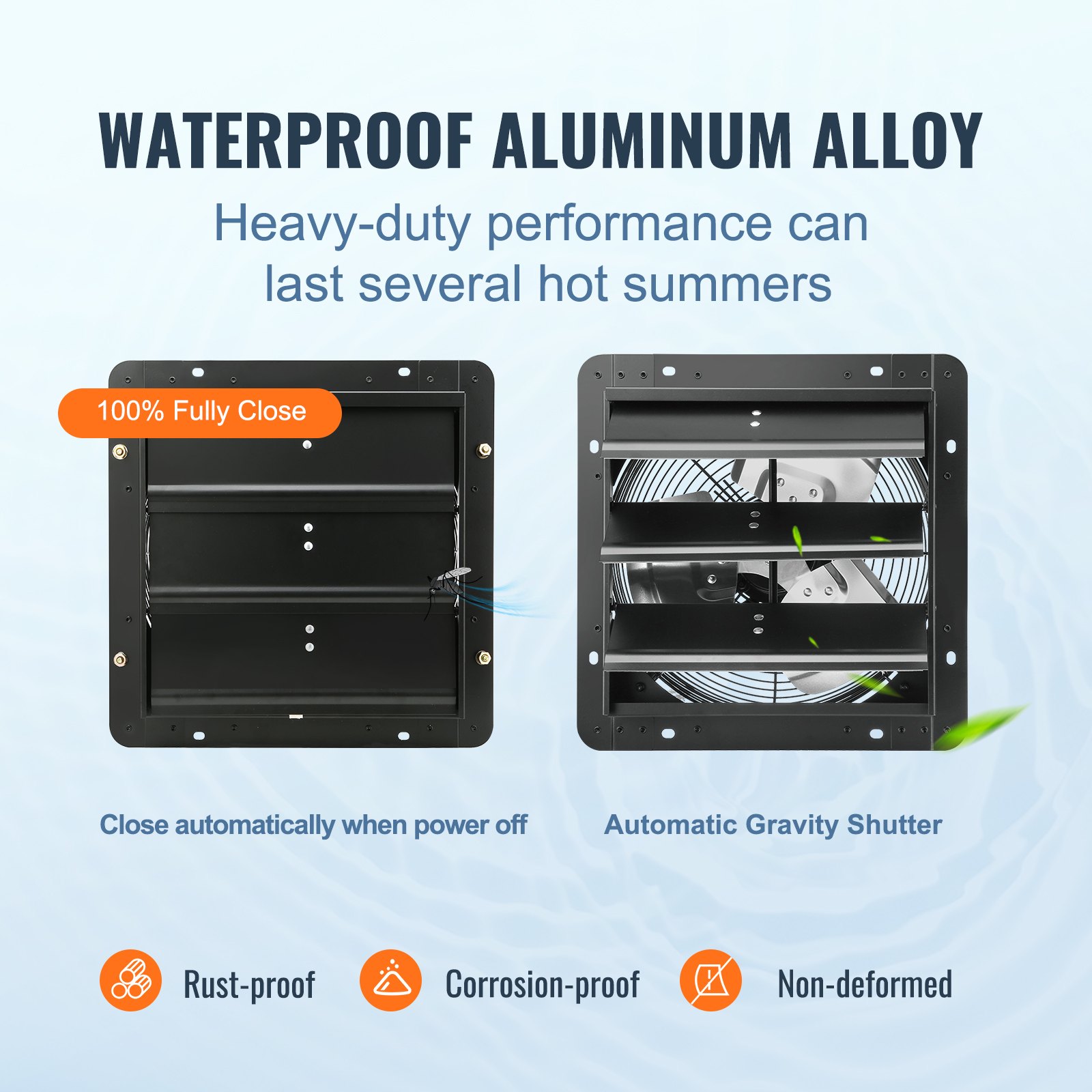 The high-quality materials used in the housing and grille ensure that the fan maintains excellent performance even in harsh weather conditions like rain and snow. The louvered fan automatically shuts down during the winter when not in use to help maintain indoor temperature.
