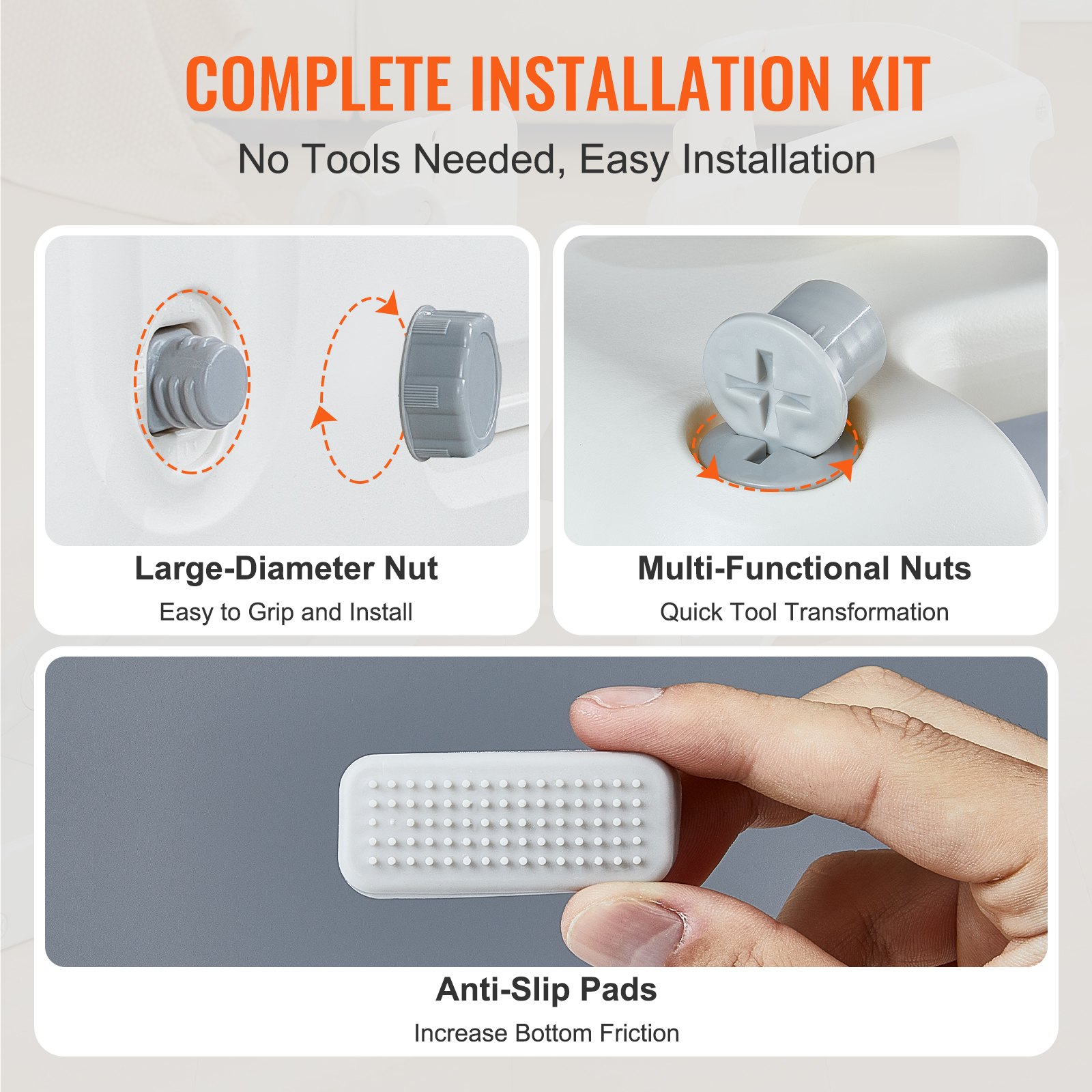 Equipped with installation package, no cumbersome tools, easy installation. Large-diameter nuts, multi-functional nuts, and non-slip pads, all available, let you effortlessly create parent-child installation art.
