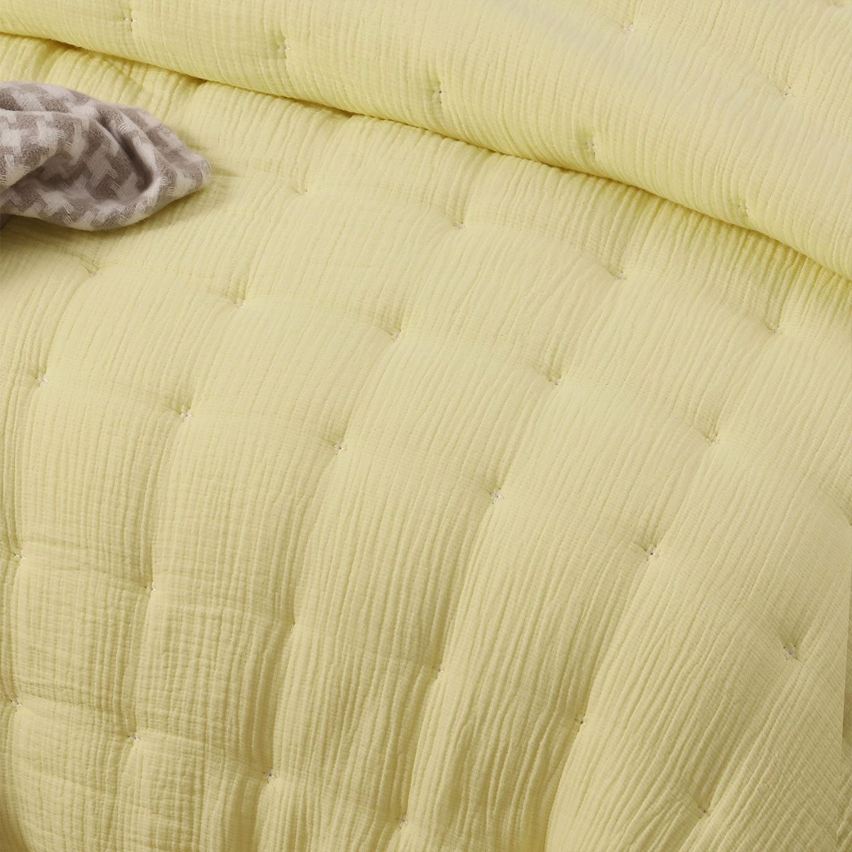 This 3 Piece Hugo Cotton Gauze Quilted Comforter Set Butter by Vintage Design Homewares is made from a Cotton Gauze fabric that mixes the softness of cotton with the crinkled look of linen. With polyester filling to add to that softness. Cotton Gauze is composed of two thin layers of cotton woven together by invisible stitches at regular intervals giving it a light airy feel. With its light breathable properties, cotton gauze offers supreme comfort. Our cotton is certified OEKO-TEX, guarantees a textile tested every year and is certified as free from toxic substances.